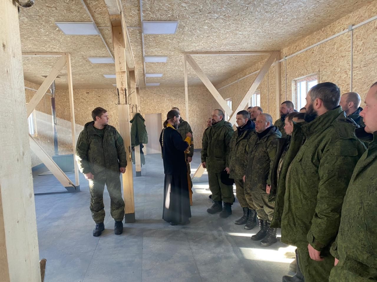 В День народного Единства в воинской части 14038 села Галенки протоиерей Дмитрий Федорин провел беседу с новобранцами, в которой рассказал о значении заповедей Божьих, взаимоотношении Церкви и армии, а также о святости воинского долга