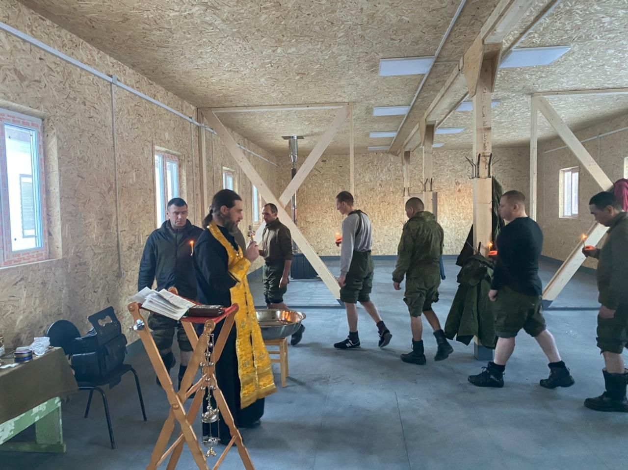 После молебного пения священник совершил Таинство Крещения. Благодать Святого Духа восприняли десять воинов.