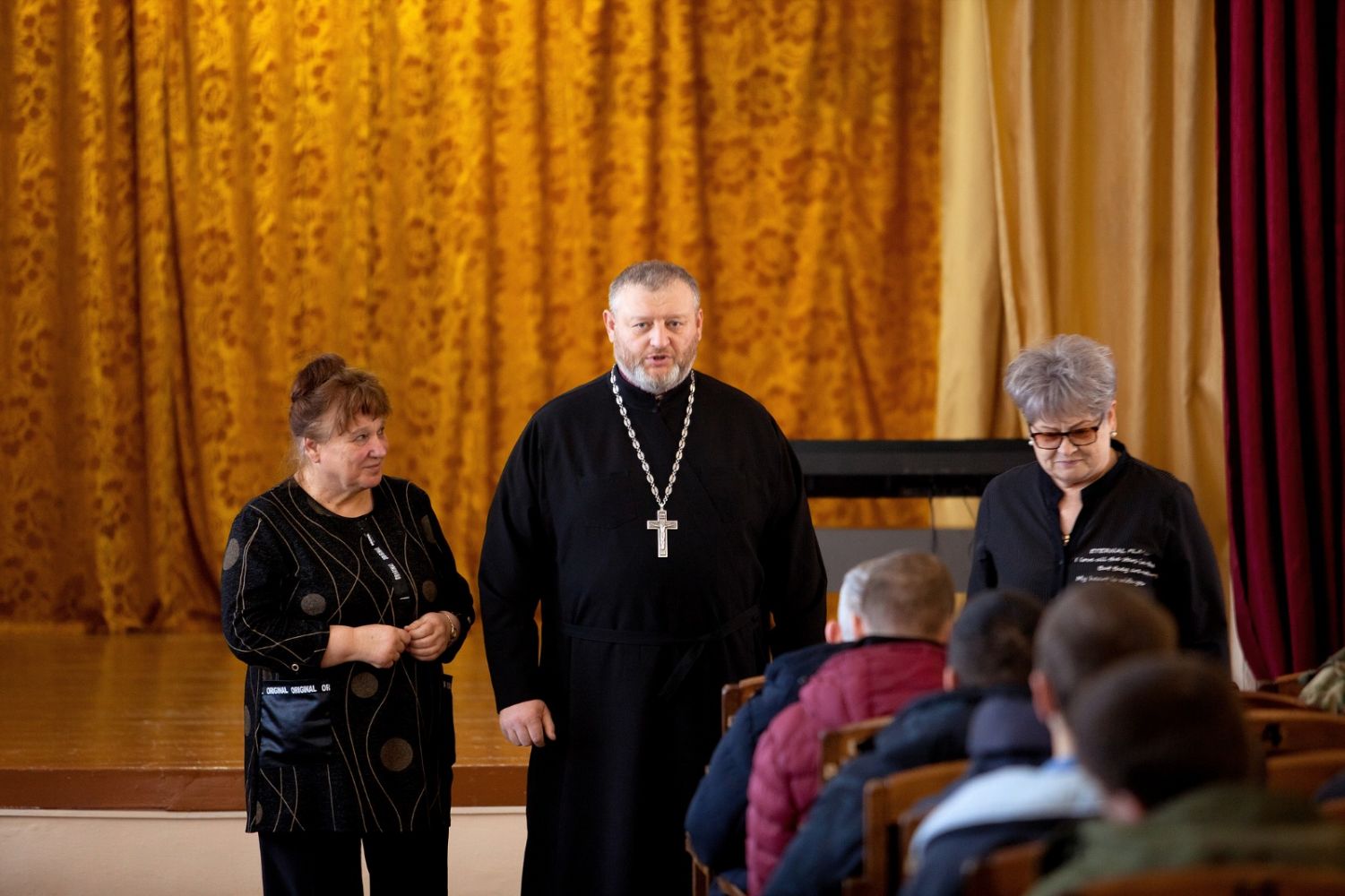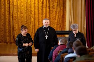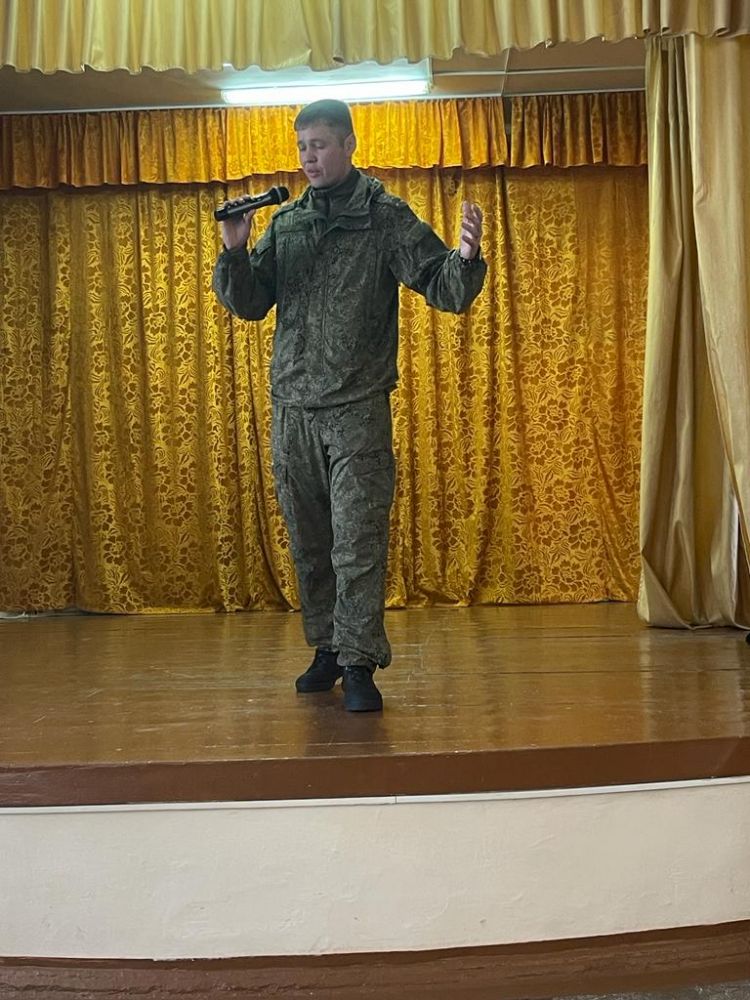 Солдатский клуб был полон, кроме солдат срочной службы, присутствовали воины, вернувшиеся с СВО. Иерей Владимир Григорьев поздравил воинов с Днем Защитника Отечества.