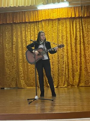 Затем состоялась праздничная программа. Участники концерта дарили творчество и свои таланты зрителям. Воспитанники детской школы искусств исполняли музыкальные произведения на фортепиано и баяне. Особенно запомнился зрителям номер в исполнении баяниста марш «Прощание славянки». Девочки исполнили песни «Панама» и вальс «Ленинград». Зрители аплодисментами проводили выступление учениц воскресной школы прочитавших стихи о празднике 23 февраля. Песни в исполнении актера театра Василия Сальниченко «Последний бой» и «Позови меня тихо по имени» заслужили громкие аплодисменты. Дирижер военного оркестра Антон исполнил песни «За святую Русь» и «Вера славная, вера православная».