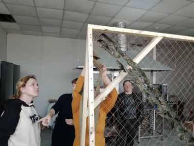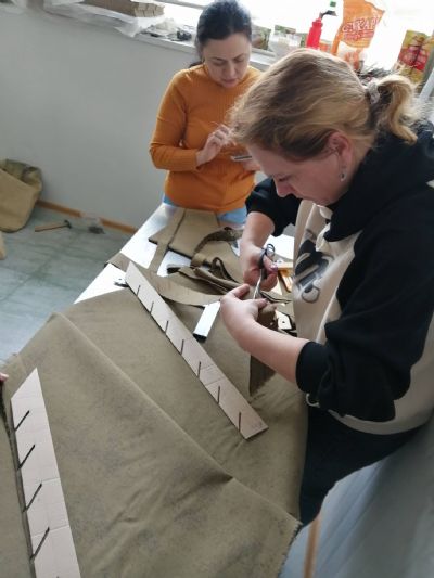7 марта 2023 года добровольцы Свято-Никольского кафедрального собора провели в Артеме мастер-класс по плетению маскировочных, а также передали артемовскому цеху стойку для сети, камуфляжную ткань и дели.