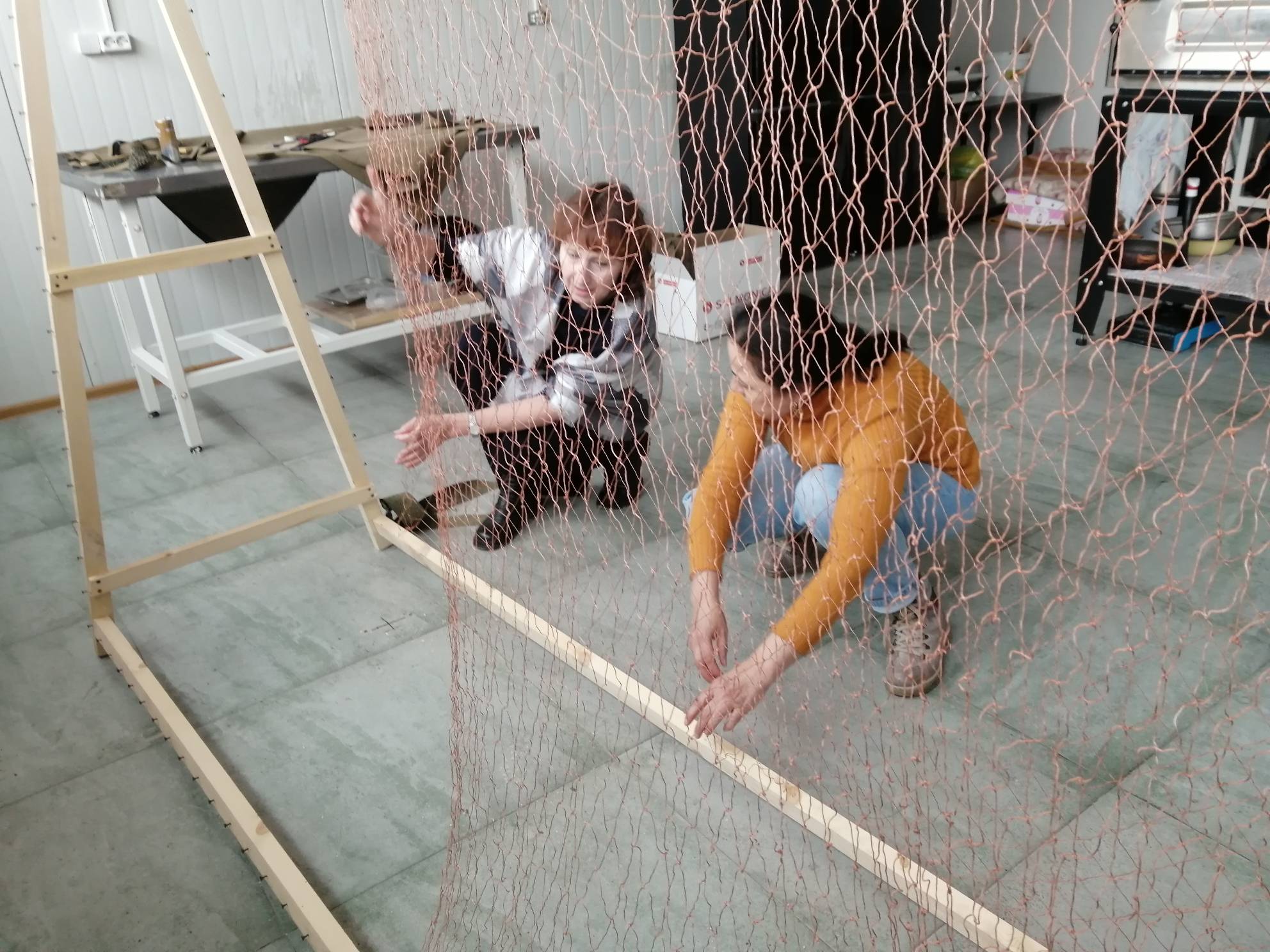 Добровольцы из нового цеха оказались очень толковыми, быстро вникли в тонкости процесса и тут же принялись за свою первую маскировочную сеть!