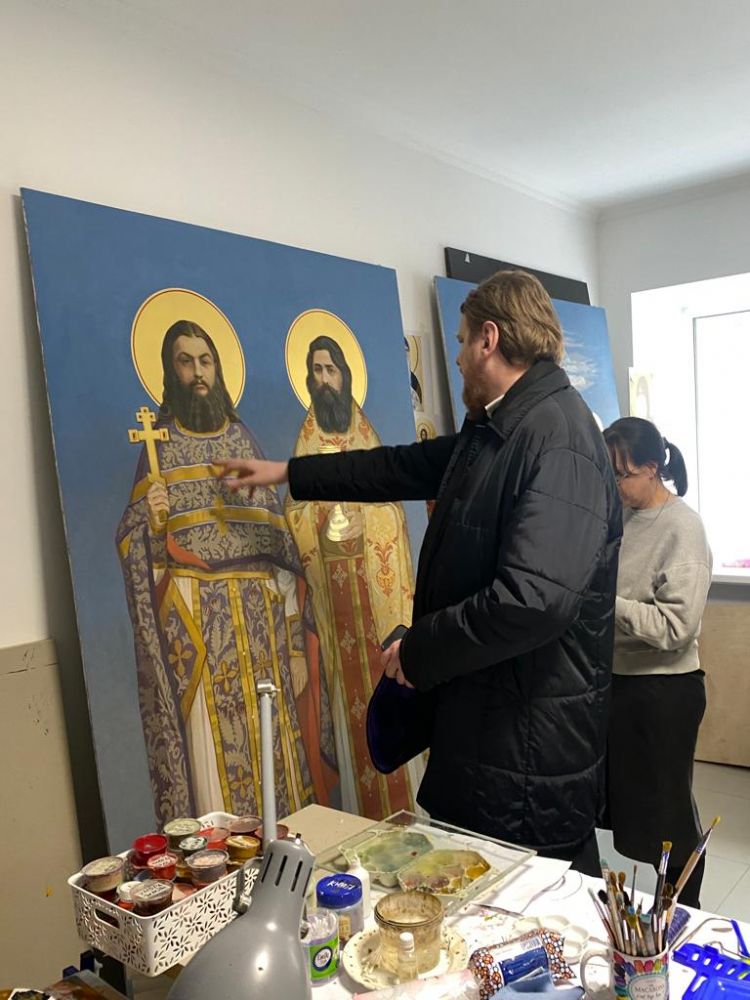 Ярославль. 23 марта 2023 года митрополит Владивостокский и Приморский Владимир посетил художественные мастерские «Ковчег», где ведется работа над написанием икон для строящегося Спасо-Преображенского собора г. Владивостока.