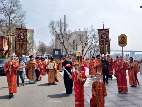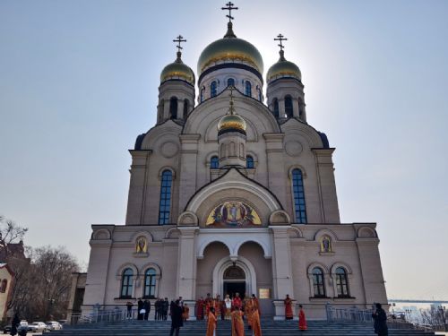 21 апреля, в понедельник Светлой седмицы, Божественную литургию в Спасо-Преображенском соборе возглавил митрополит Владивостокский и Приморский Павел.