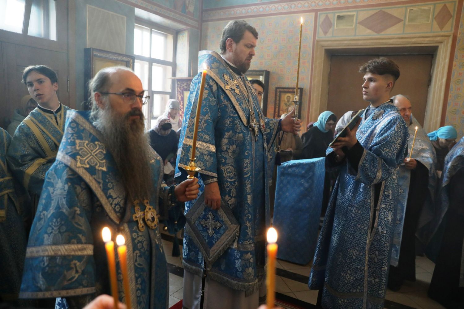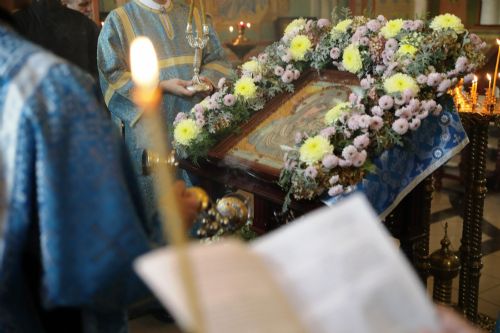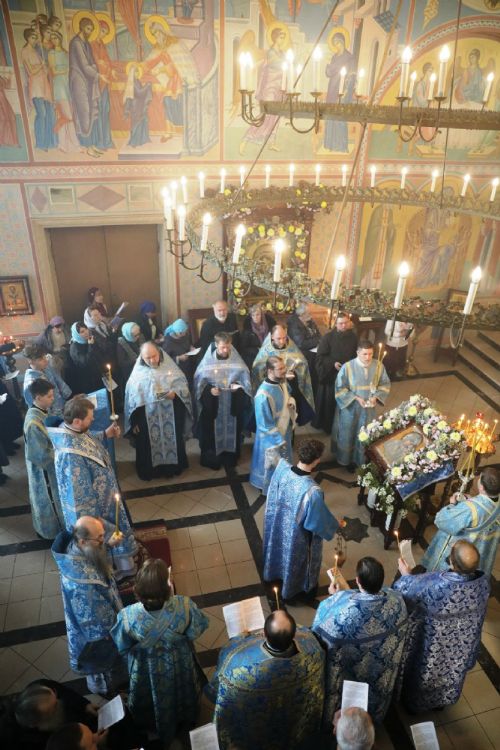 На утрене архипастыри и духовенство прочитали акафист Пресвятой Богородице в честь иконы Ее Казанской.