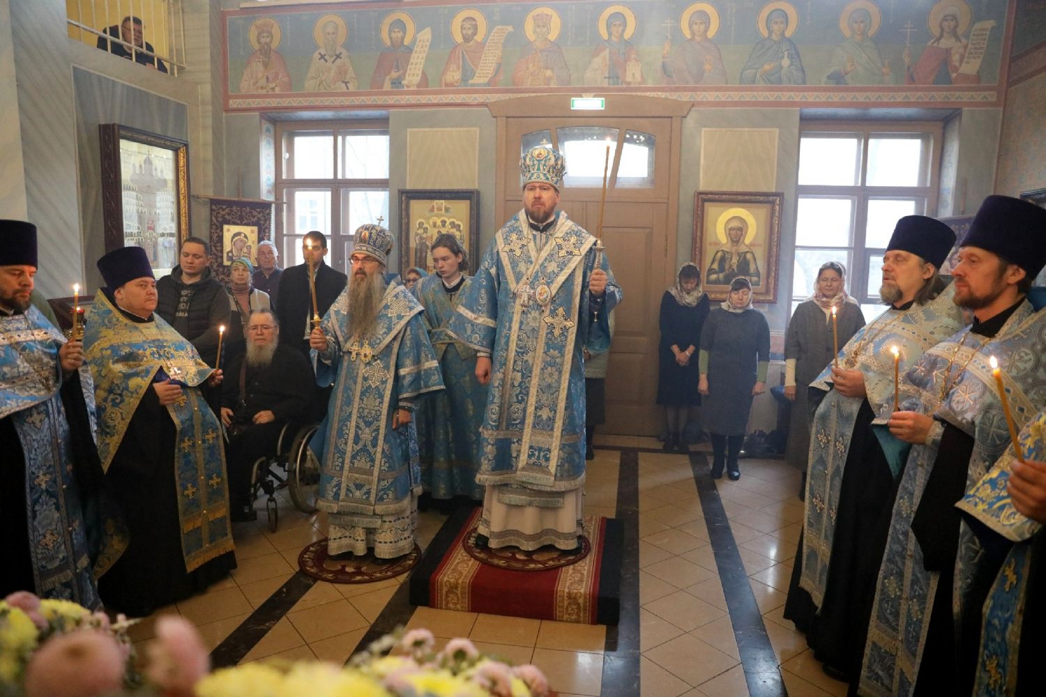 Архипастырям сослужили: благочинный I Владивостокского благочиния, исполняющий обязанности благочинного II Владивостокского благочиния, ключарь Спасо-Преображенского собора протоиерей Сергий Шуталев; настоятель храма протоиерей Ростислав Мороз; протоиерей Даниил Нефедьев; иерей Роман Бурдинский; иерей Дионисий Гордеев; ответственный за организацию архиерейских богослужений иерей Дионисий Ищенко.