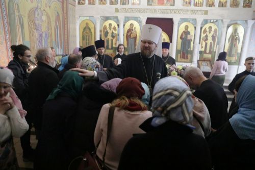 Поблагодарив за поздравление, глава Приморской митрополии обратился к молящимся с архипастырским словом и поздравил прихожан с кануном престольного праздника.