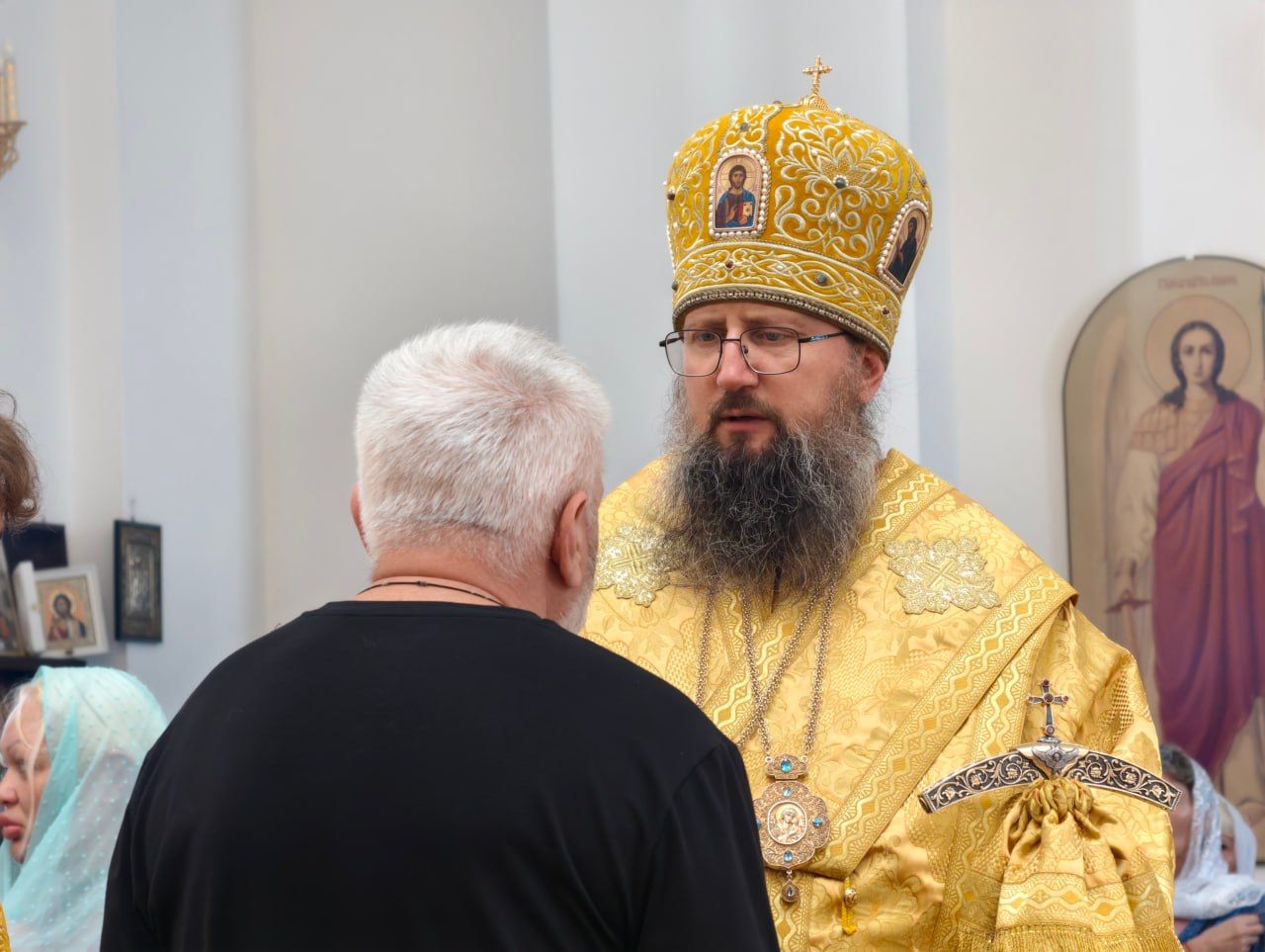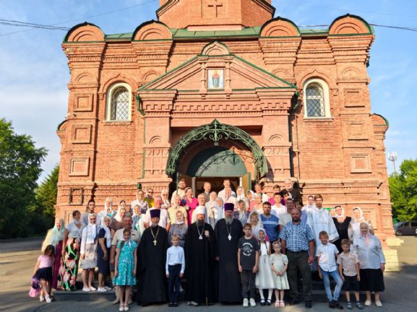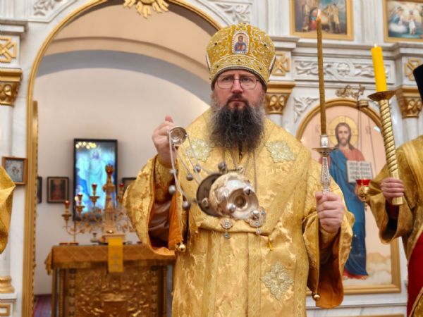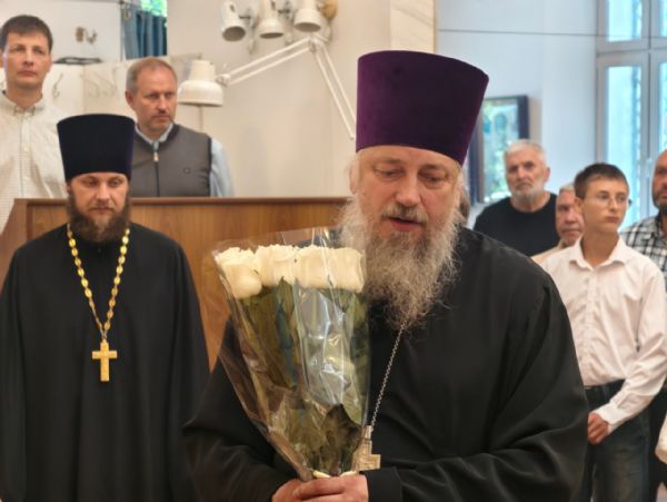 По окончании богослужения настоятель храма протоиерей Сергий Бирюк поблагодарил владыку Павла за архипастырский визит и преподнёс букет цветов.