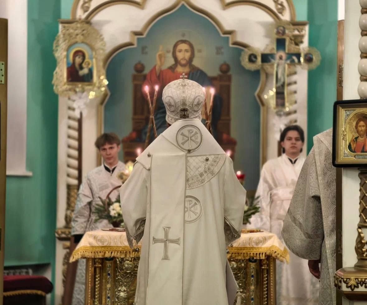 На входе в храм прихожане встретили владыку хлебом-солью.