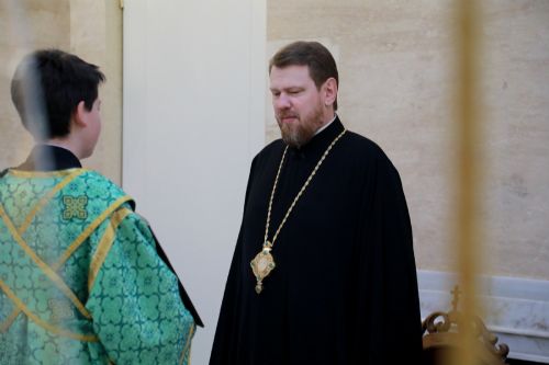 Его Высокопреосвященству сослужили: ключарь собора, благочинный I Владивостокского благочиния Владивостокской епархии протоиерей Сергий Шуталев; игумен Антоний (Каменчук); иерей Максим Точуков.