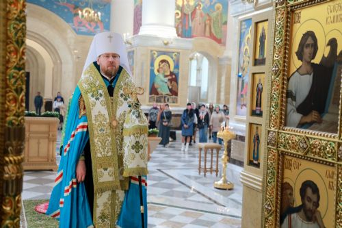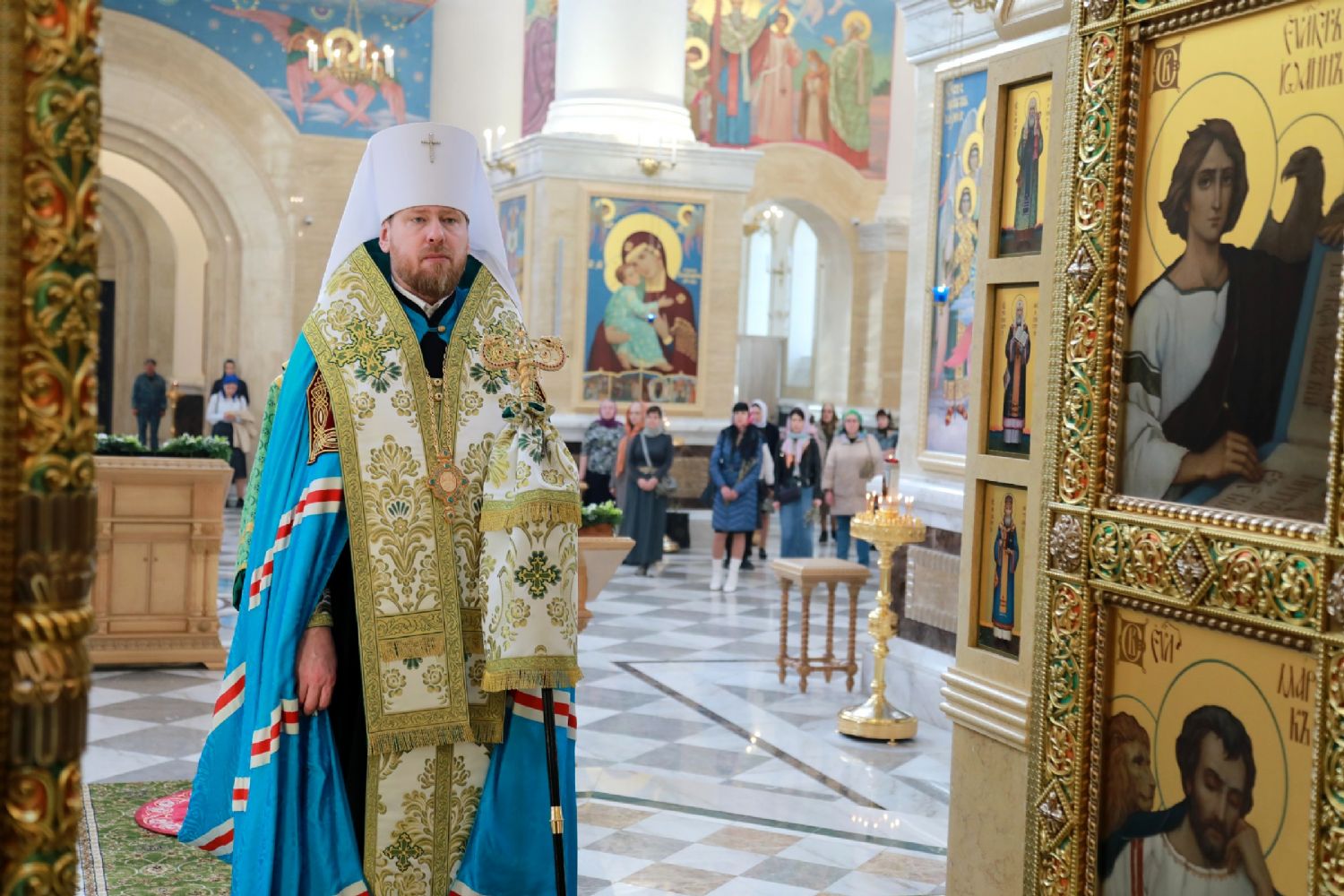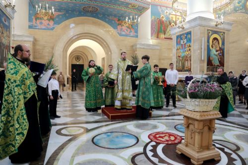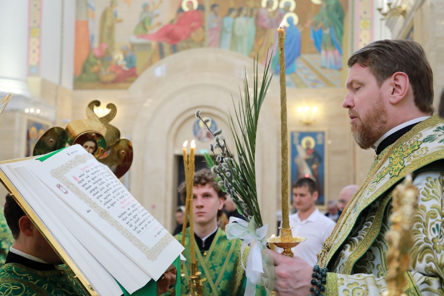 В канун Вербного воскресенья митрополит Владимир совершил всенощное бдение в Спасо-Преображенском соборе