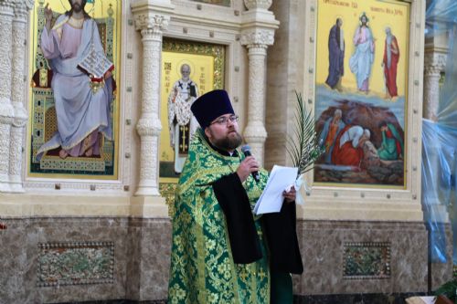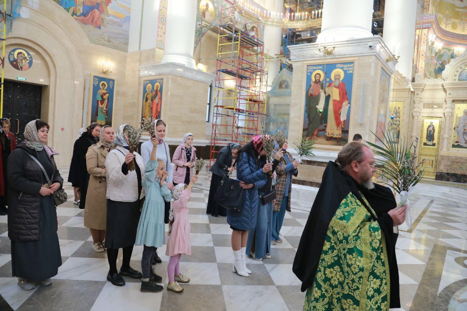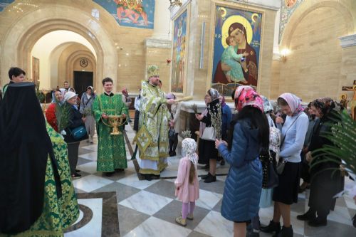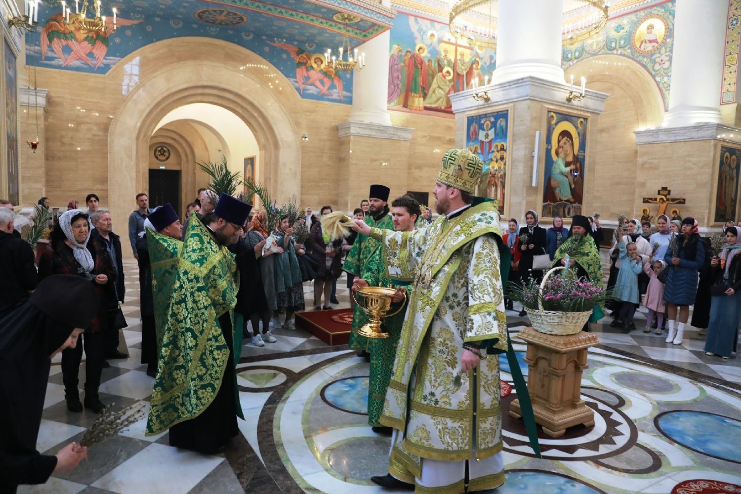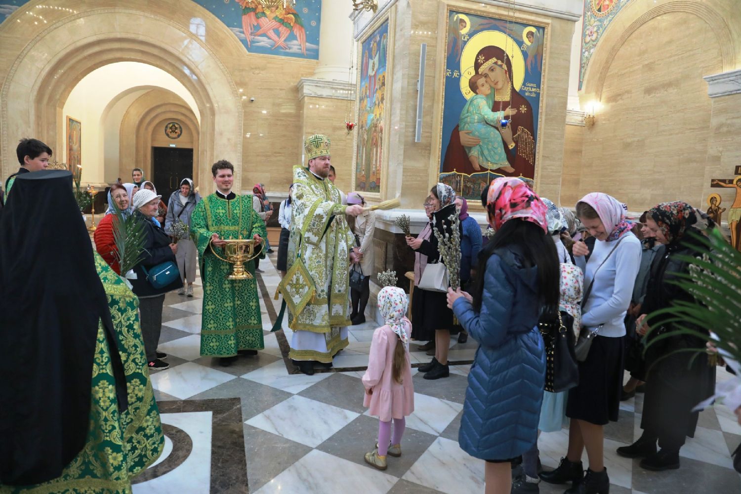 После чтения Святого Евангелия владыка Владимир совершил чин освящения вербных ветвей (ваий) и помазание верующих освященным елеем.