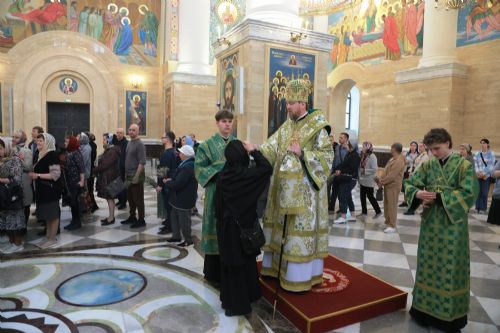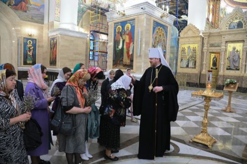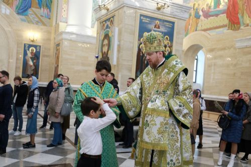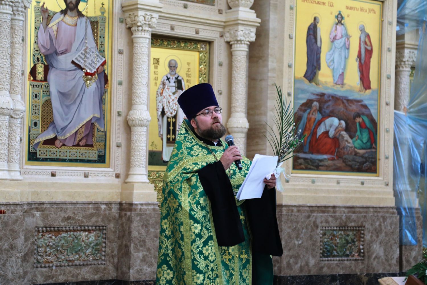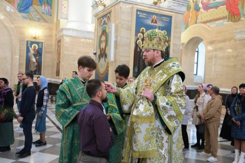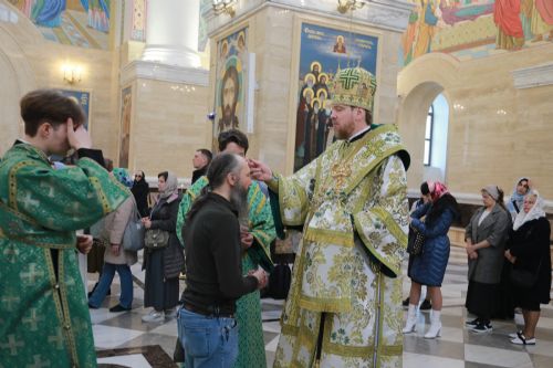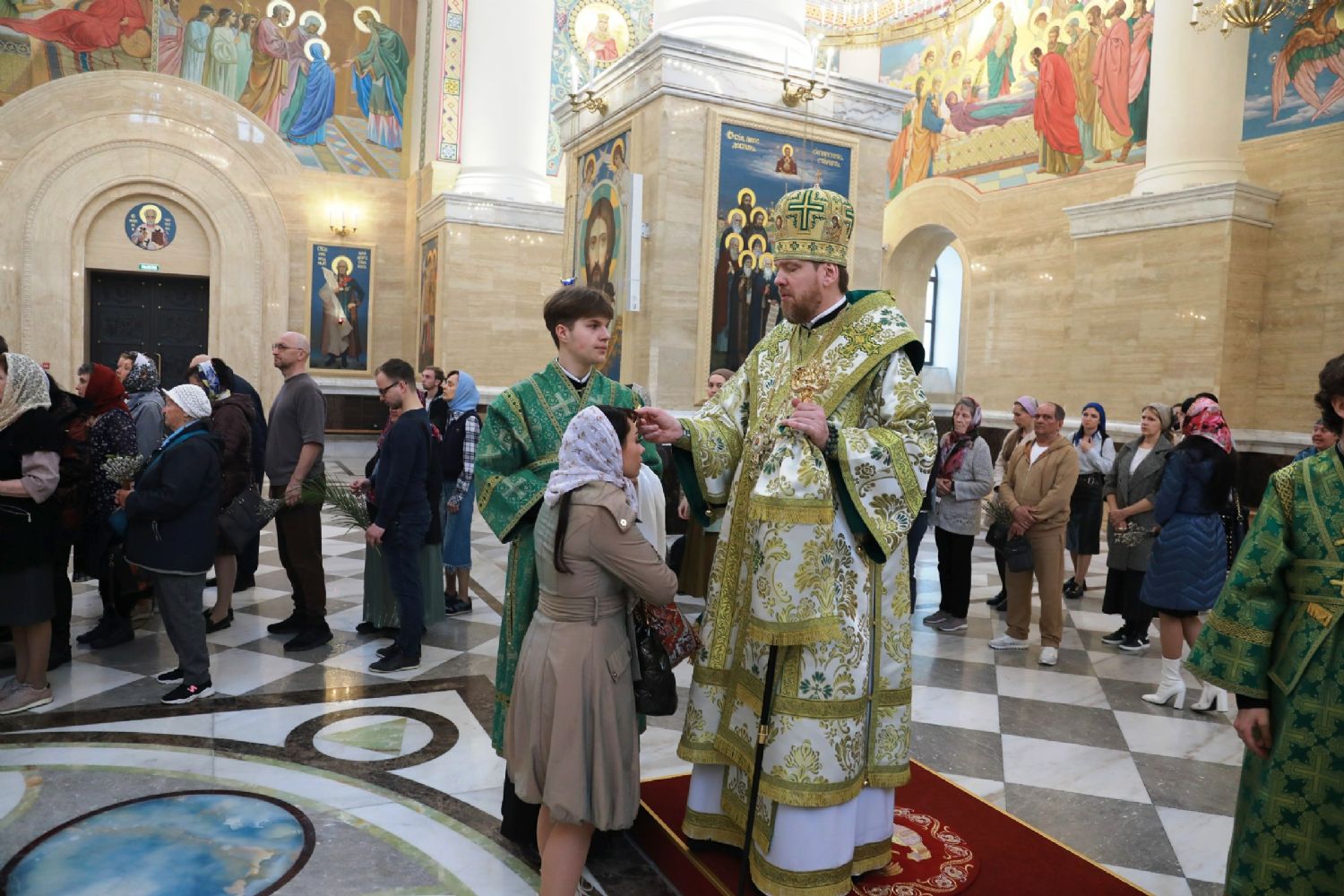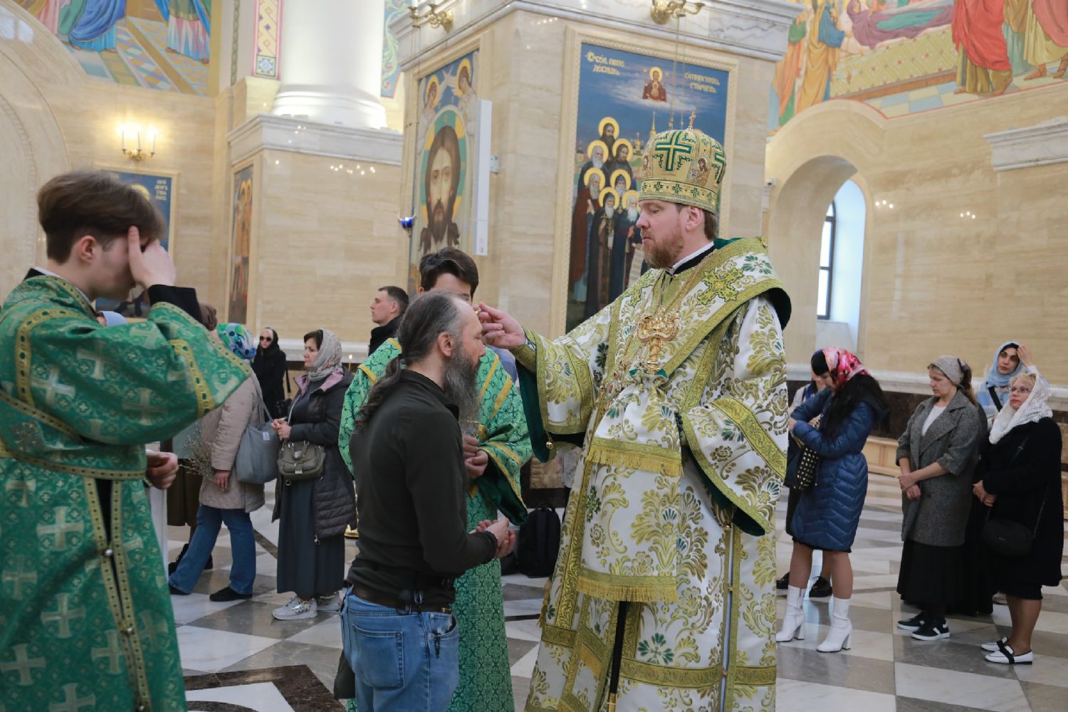 После чтения Святого Евангелия владыка Владимир совершил чин освящения вербных ветвей (ваий) и помазание верующих освященным елеем.