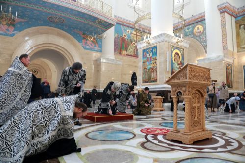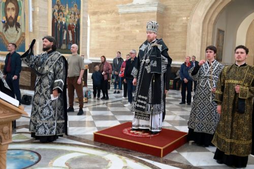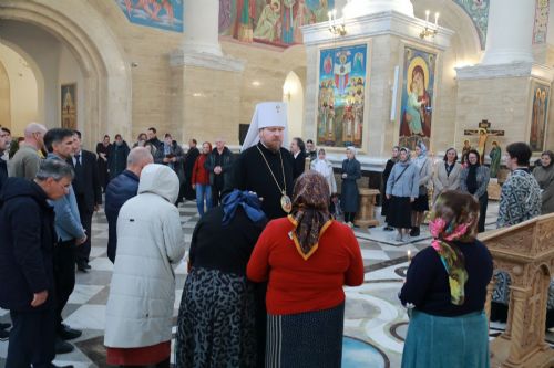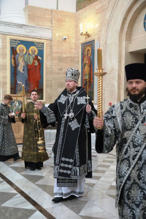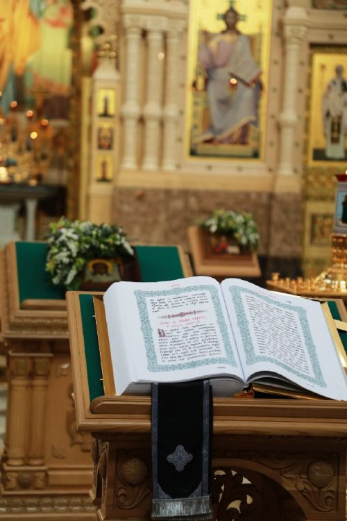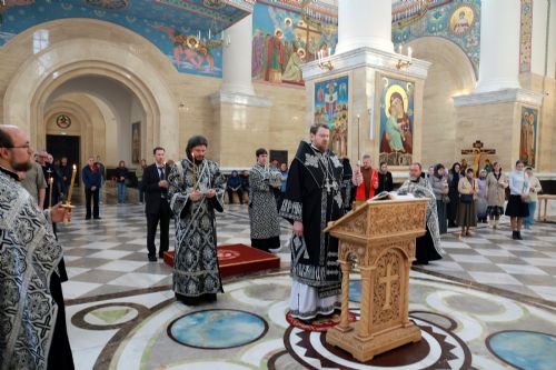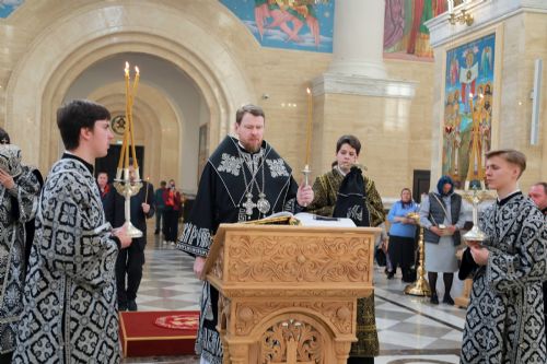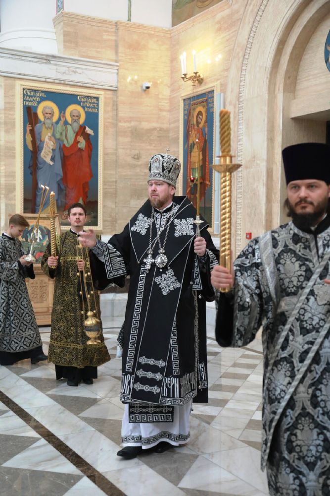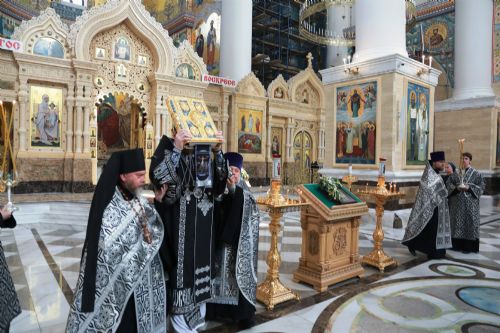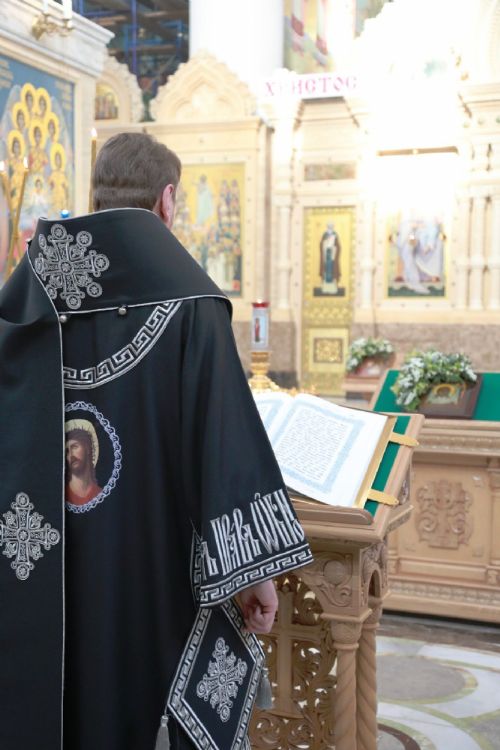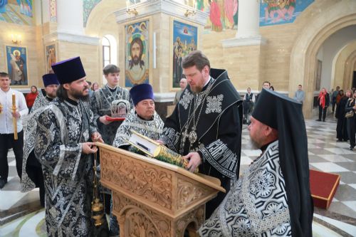 Митрополит Владимир совершил утреню с чтением двенадцати Евангелий Страстей Христовых в Спасо-Преображенском соборе