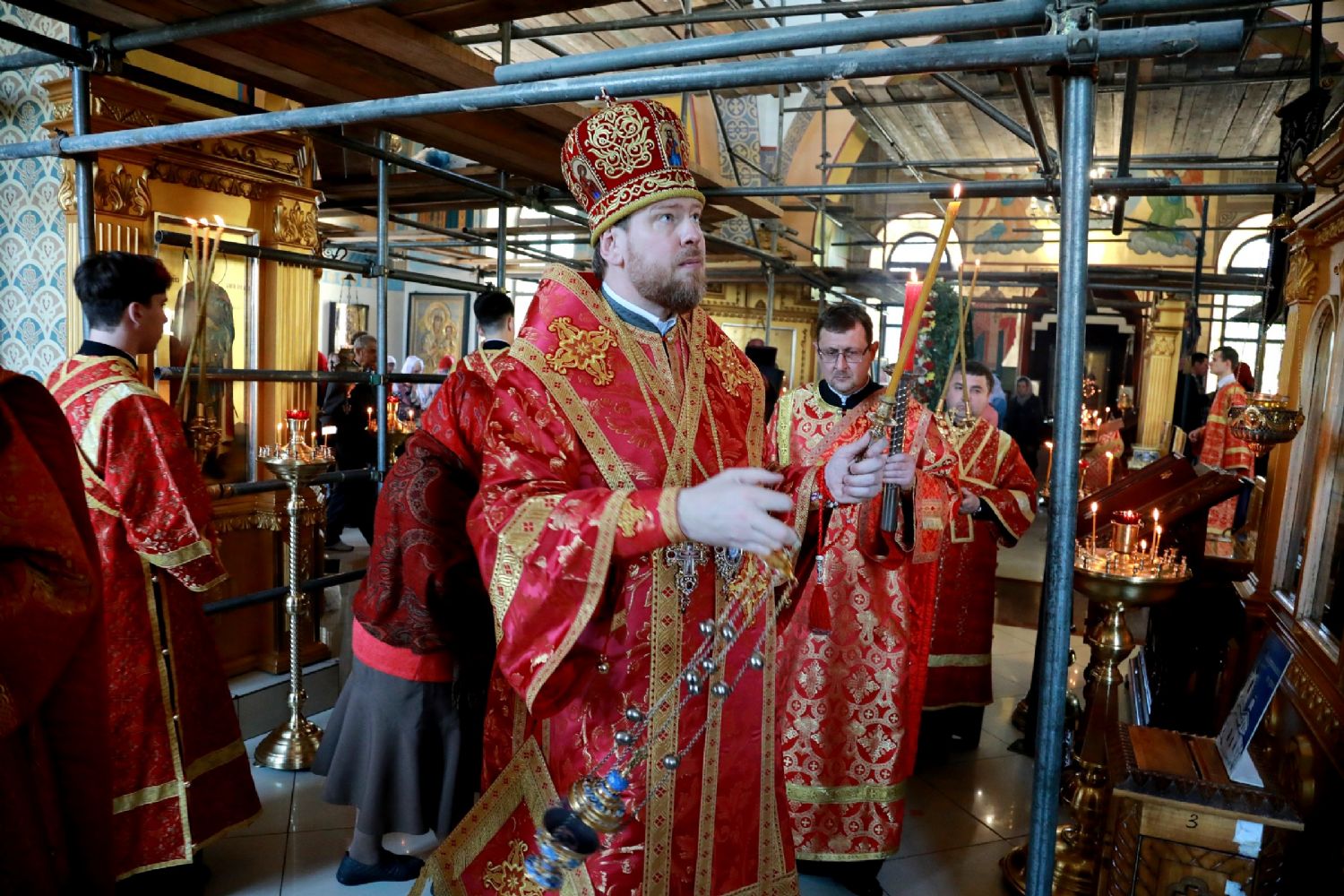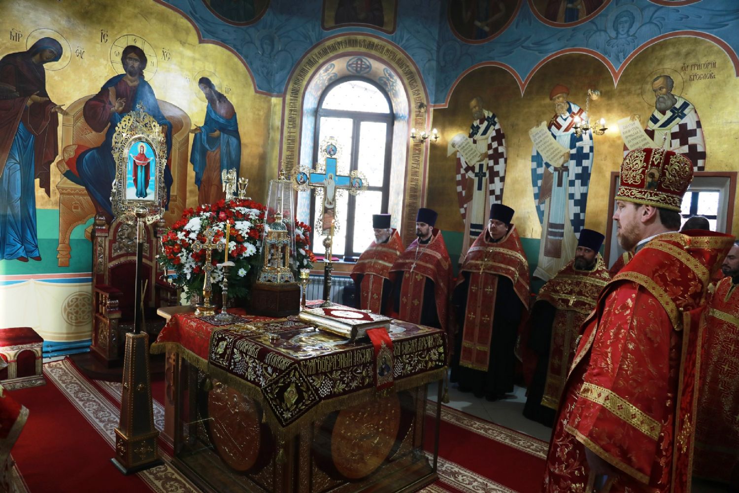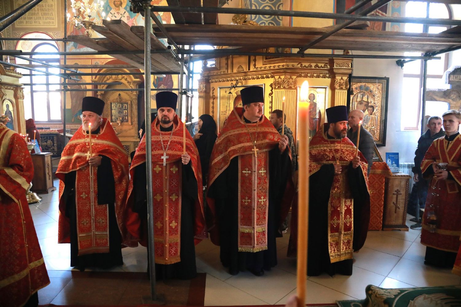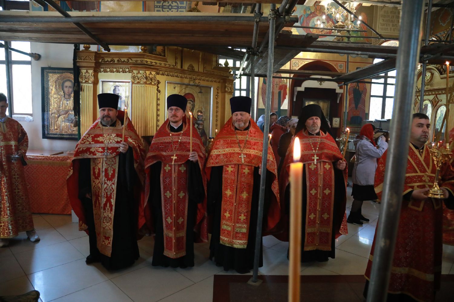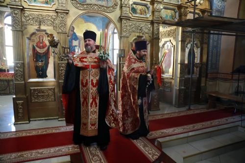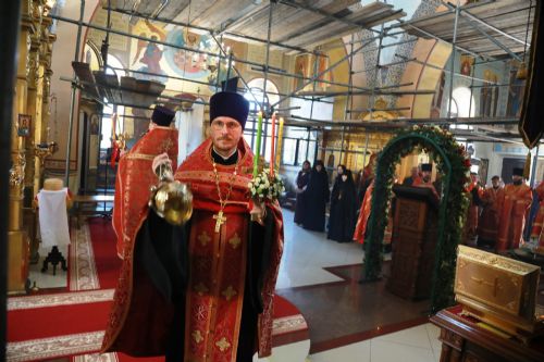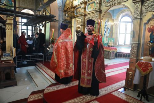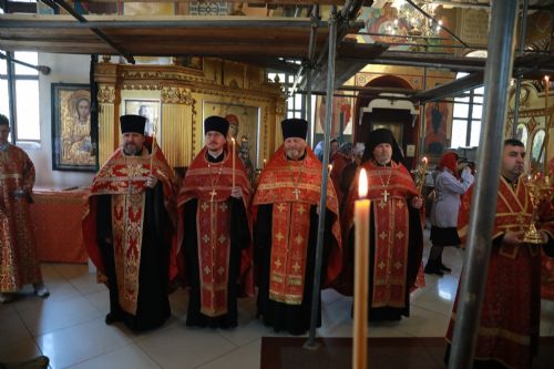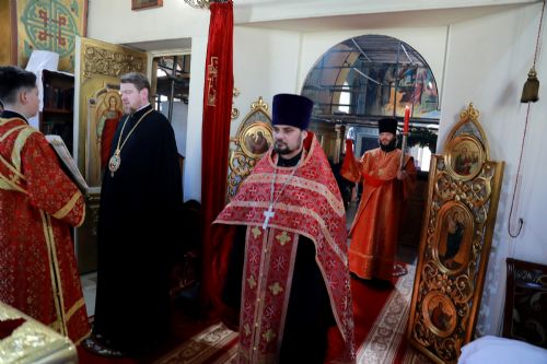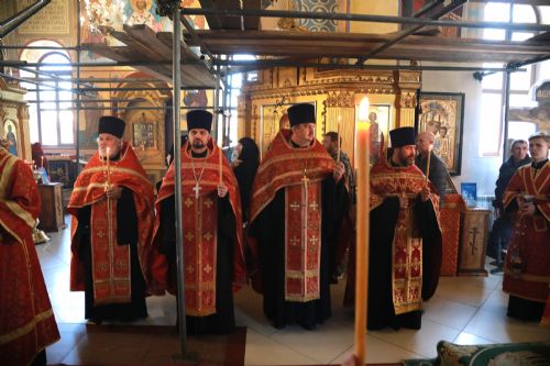 Его Высокопреосвященству сослужили: благочинный Уссурийского благочиния Владивостокской епархии, настоятель храма святителя Николая протоиерей Андрей Машанов; настоятель Покровского храма протоиерей Сергий Якутов; настоятель храма преподобного Серафима Саровского г. Уссурийска протоиерей Стефан Цуркан; настоятель храма святого благоверного великого князя Александра Невского при Уссурийском Суворовском училище иерей Павел Моисеев; настоятель храма Казанской иконы Пресвятой Богородицы г. Уссурийска иерей Владимир Григорьев; настоятель храма святого Пророка Божия Илии при 83-й отдельной гвардейской десантно-штурмовой бригаде иерей Сергий Качев; иерей Вячеслав Никитин; настоятель храма всех святых, во всем мире просиявших, при Арсенале ракетного и артиллерийского вооружения Центра материально-технического обеспечения Восточного военного округа иеромонах Платон (Карпов).