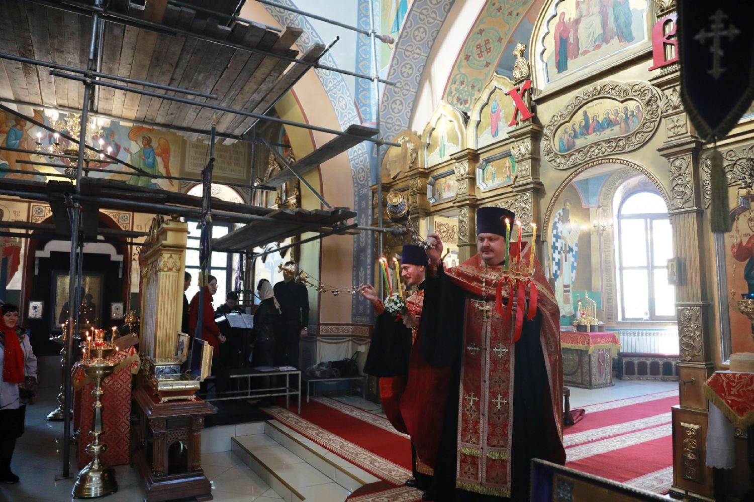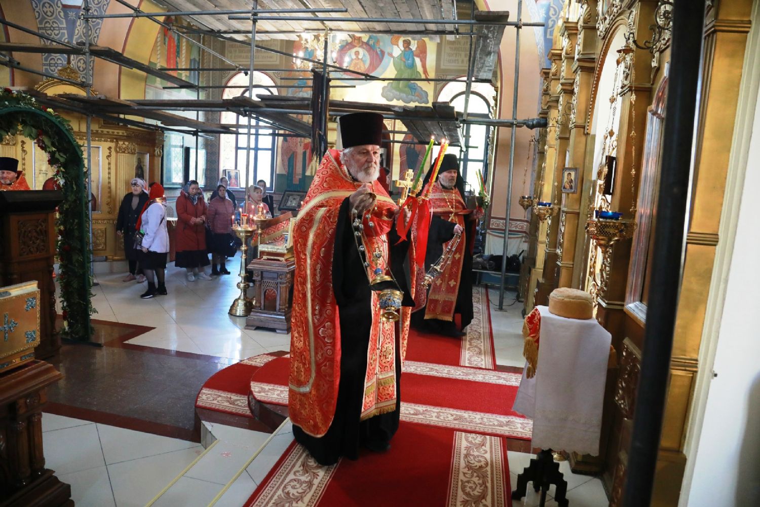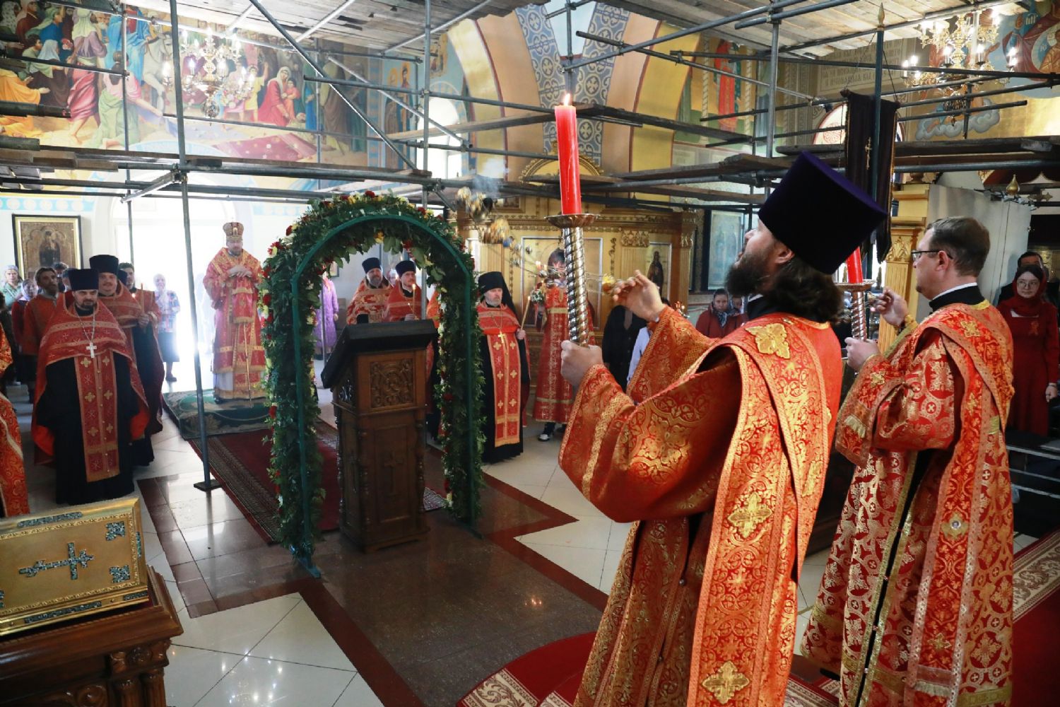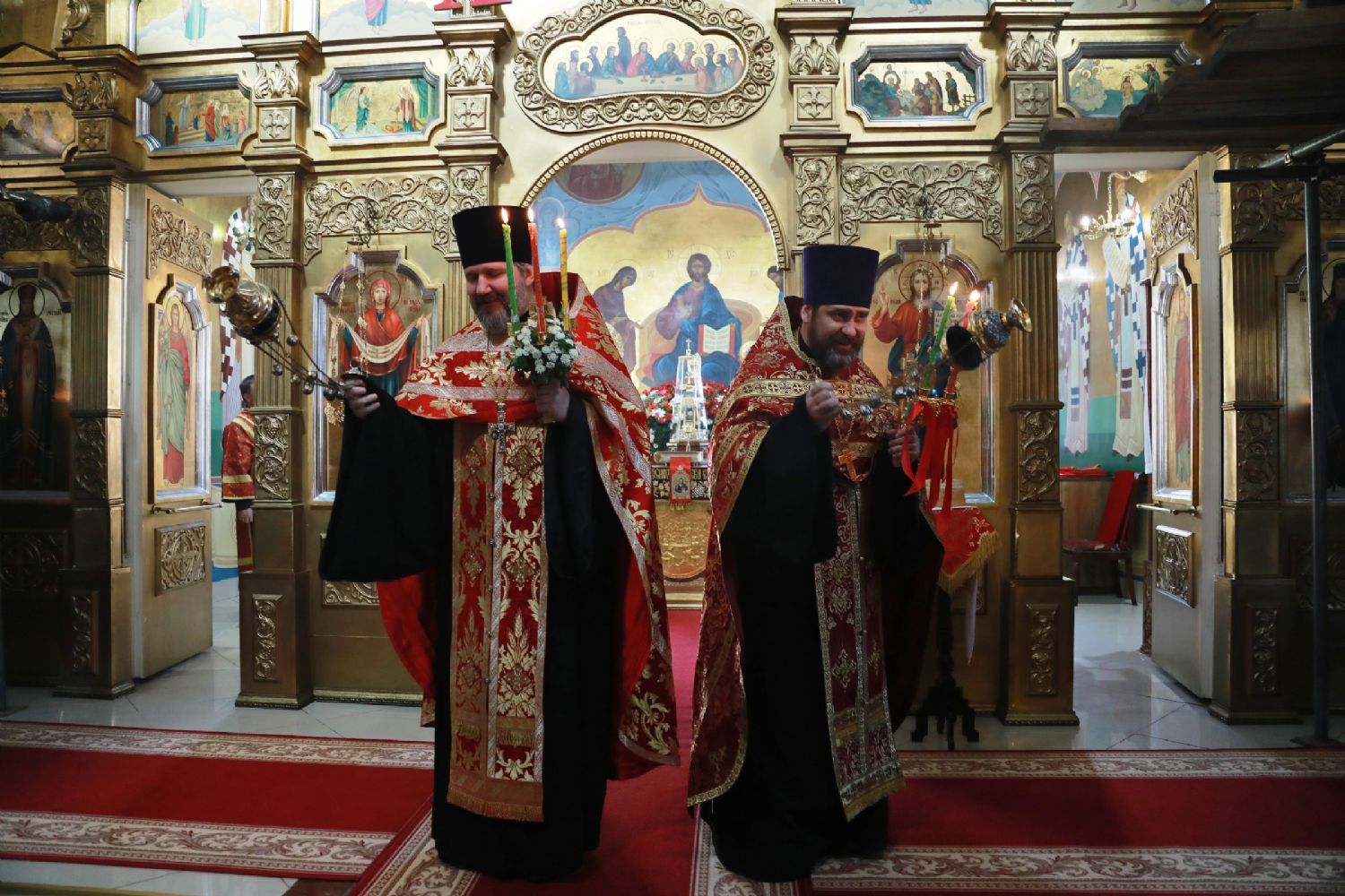 Его Высокопреосвященству сослужили: благочинный Уссурийского благочиния Владивостокской епархии, настоятель храма святителя Николая протоиерей Андрей Машанов; настоятель Покровского храма протоиерей Сергий Якутов; настоятель храма преподобного Серафима Саровского г. Уссурийска протоиерей Стефан Цуркан; настоятель храма святого благоверного великого князя Александра Невского при Уссурийском Суворовском училище иерей Павел Моисеев; настоятель храма Казанской иконы Пресвятой Богородицы г. Уссурийска иерей Владимир Григорьев; настоятель храма святого Пророка Божия Илии при 83-й отдельной гвардейской десантно-штурмовой бригаде иерей Сергий Качев; иерей Вячеслав Никитин; настоятель храма всех святых, во всем мире просиявших, при Арсенале ракетного и артиллерийского вооружения Центра материально-технического обеспечения Восточного военного округа иеромонах Платон (Карпов).