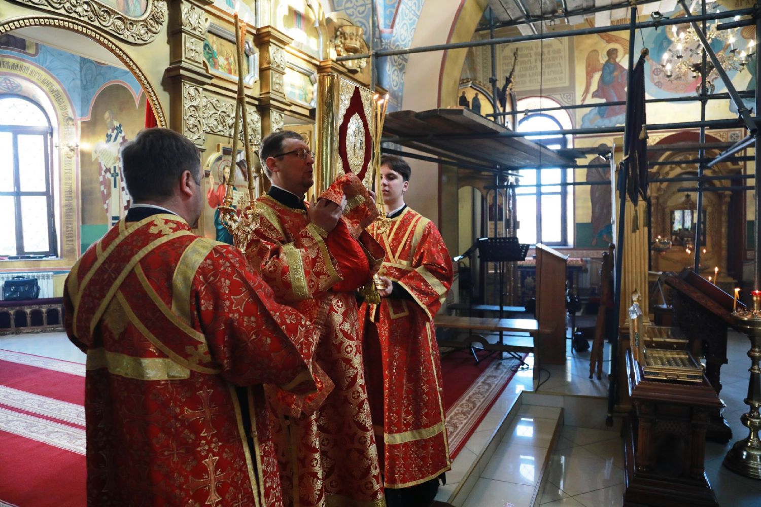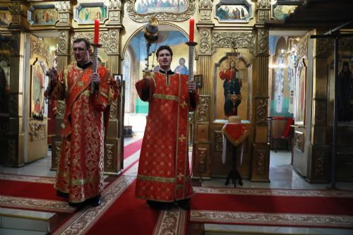 На полиелее глава Приморской митрополии совершил награждение клирика Никольского храма города Уссурийска диакона Александра Любарца. За усердные труды во славу Святой Церкви к празднику Святой Пасхи он был удостоен права ношения двойного ораря.