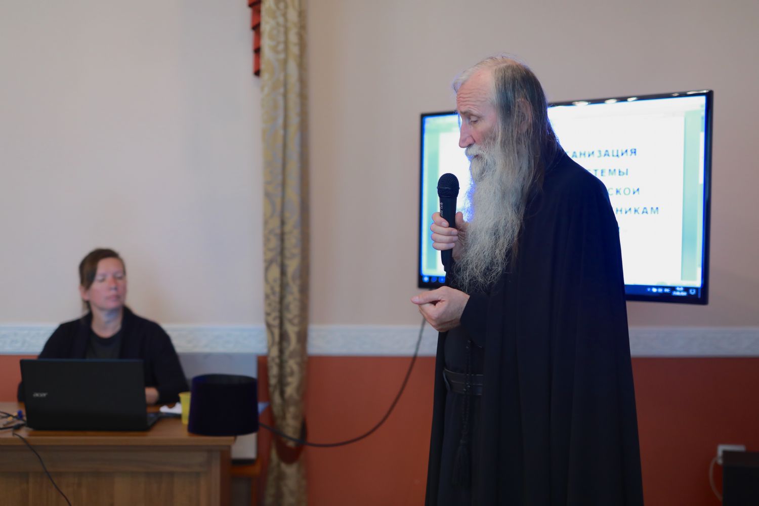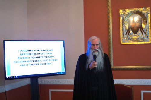 Затем с рассказом о деятельности Комитета и инструментах оказания помощи защитникам Отчества и их близким выступил монах Киприан.