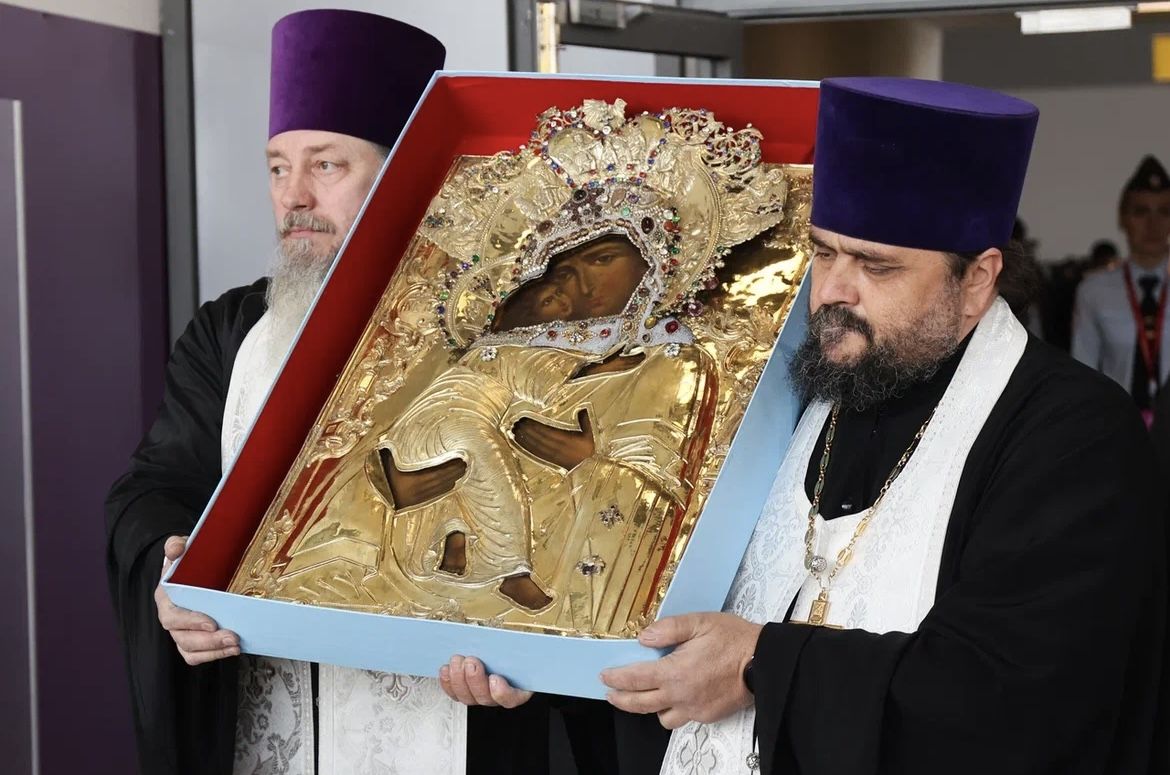 Владивосток. 10 января 2025 года в аэропорт города прибыла икона Божией Матери «Умиление» из Псково-Печерского мужского монастыря.