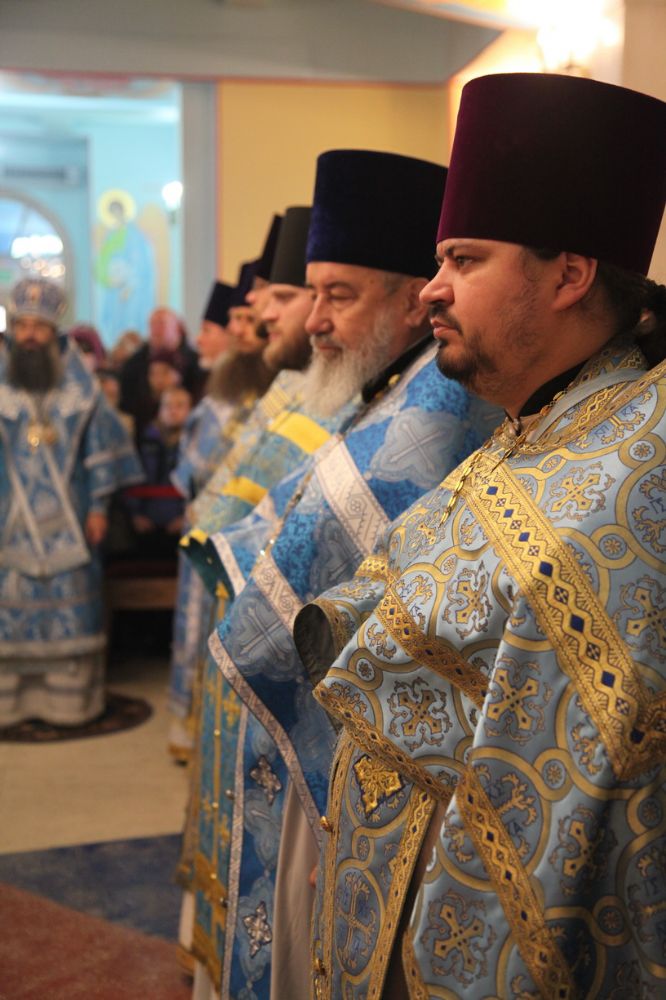 Перед началом праздничной Литургии был совершен Соборный молебен с чтением акафиста Казанской иконы Божией Матери. Архиереям сослужил сонм духовенства Приморской митрополии. За богослужением молился глава городского округа ЗАТО г.Фокино Сергей Александрович Терентьев; представители казачества, курсанты морского училища.
