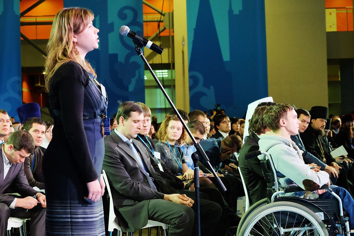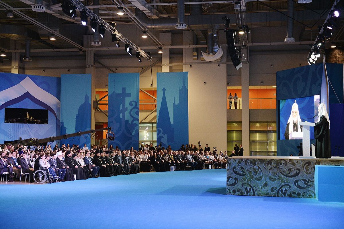 Москва. Первый Международный съезд православной молодежи открылся 18 ноября 2014 года во Всероссийском выставочном центре. Церемонию открытия возглавил Святейший Патриарх Московский и всея Руси Кирилл. Предстоятель Русской Церкви обратился к участникам съезда с Первосвятительским словом и ответил на вопросы представителей православных молодежных организаций.