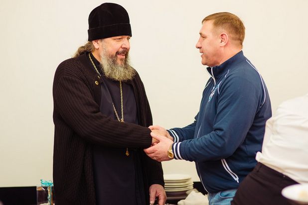 Владивосток. Хоккейный клуб «Адмирал» традиционно встречает праздник Рождества в православной гимназии. Начался праздник с молебна в храме святых равноапостольных Кирилла и Мефодия, в котором приняли участие все игроки ХК "Адмирал", включая легионеров. Тренер вратарей команды Константин Власов приехал на службу с супругой Анной и сыном Яном и с двухмесячной дочкой. После молебна на площади у храма гимназисты пели рождественские колядки, водили хороводы и играли в подвижные игры, вовлекая всех, в том числе и игроков «Адмирала» в Рождественские забавы. Настоятель храма и директор гимназии протоиерей Игорь Талько приготовили праздник не только для гостей-хоккеистов, но и для детей из «Паруса надежды» и всех прихожан.