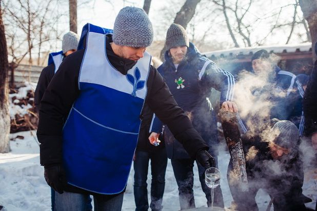 После игр на свежем воздухе хозяева предложили хоккеистам отведать горячей ухи из трёх сортов рыбы, готовили которую все вместе. Особо интересно было готовить уху легионерам - Яну Коларжу, Никласу Бергфорсу и Тому Ванделлю, который завершил процесс, окунув в чан с ухой березовую головешку.