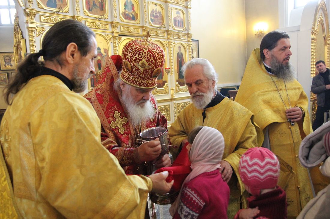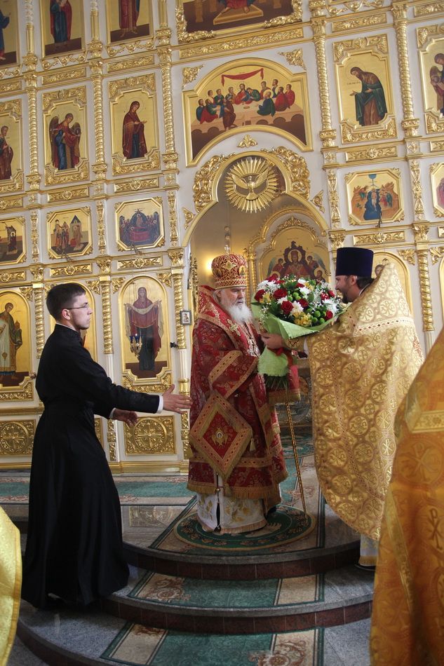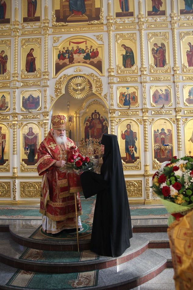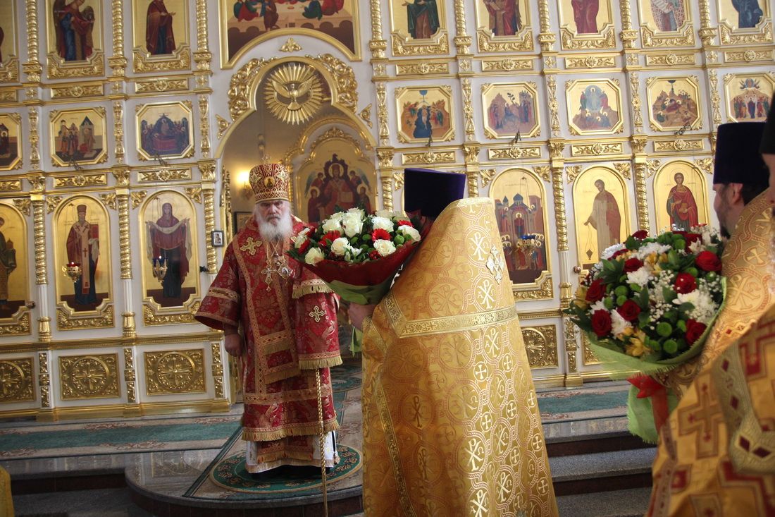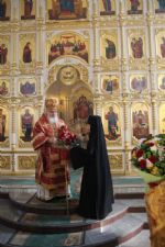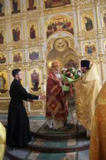 После литургии митрополит Вениамин принял поздравления от духовенства, настоятельницы Богородице-Рождественского женского монастыря игумении Варвары (Волгиной), верующих епархии.