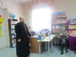 ЗАТО г. Фокино. В городской библиотеке имени А.Д. Старцева состоялась встреча с учащимися 4-х классов СОШ № 251 и гимназии № 259 г. Фокино. Встреча проходила в рамках «Дня православной книги». Темой встречи стала первая печатная книга, изданная на Руси д.Иваном Федоровым. Встречу провели настоятель храма святого апостола Андрея Первозванного г. Фокино иерей Роман Капитанюк и ведущий библиограф библиотеки Наталья Георгиевна Бикетова.