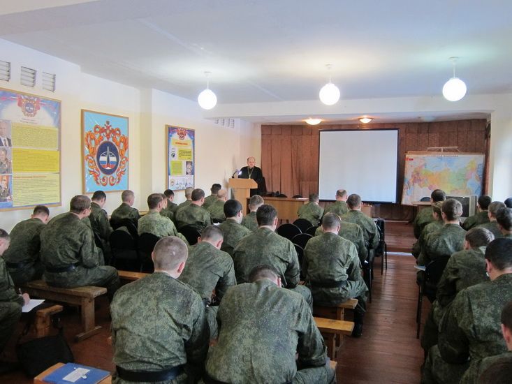 п. Руднево. Руководитель епархиального отдела религиозного образования и катехизации, настоятель храма святого апостола Андрея Первозванного г. Фокино иерей Роман Капитанюк посетил воинскую часть № 29982 и провёл беседу с личным составом части в рамках месячника сплочения коллективов на темы: «Алкоголизм – современная беда общества» и «Вежливость в армии». Священник озвучил исторические факты, связанные с алкоголем, его упоминанием в Библии, а также библейский взгляд на проблему алкоголизма, первые упоминания о страсти винопития. В ходе беседы рассматривалась взаимосвязь нравственности и духовности и их повреждение, как причина алкоголизма. Говоря о вежливости, о. Роман указал на то, что это внешнее выражение внутреннего состояния души. Отсутствие вежливости - одно из выражений поврежденности души.