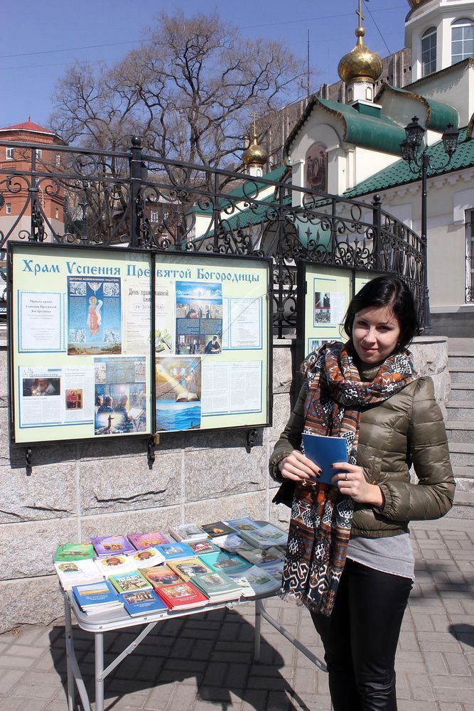 На приходах Владивостока, Уссурийска и других приморских городов собирают и раздают духовную литературу, организовывают книжные выставки, посещают с лекциями и концертами социальные, исправительные, лечебные учреждения. В частности, община Успенского храма Владивостока подготовила просветительскую акцию «Книга в подарок» и организовала сбор литературы для благотворительных акций; в храме пройдут также беседы на тему «История происхождения первой печатной книги» и «Значение православной книги в современном обществе», состоится просмотр тематического видеофильма.