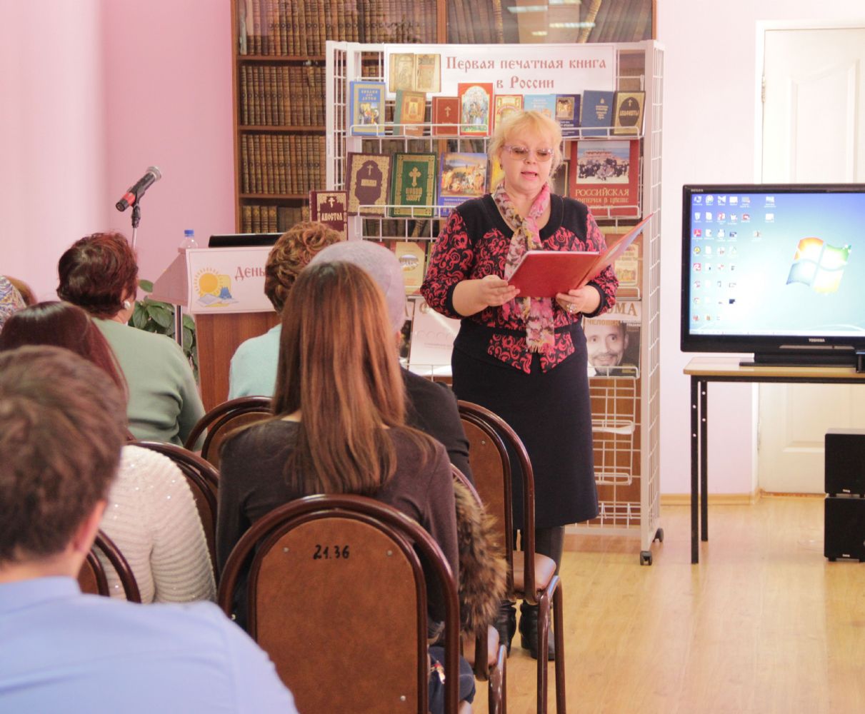 Так, в Уссурийске участниками Дня православной книги стали студенты Приморского института железнодорожного транспорта и учащиеся Уссурийского аграрного техникума. Праздник состоялся в городской библиотеке им. Горького. Его также посетили участники литературно-музыкального объединения «Звуки Лиры» им. С.В. Шевцовой – поэты и прозаики Галина Гвоздецкая, Татьяна Овчинникова, Екатерина Епораш; журналист «Уссурийских новостей» Наталья Белошенко. С приветственным словом к собравшимся обратилась заведующая сектором массовой работы МБУК «ЦБС» УГО Галина Анатольевна Самойленко.