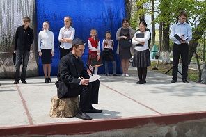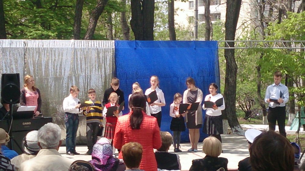 После теплых слов батюшки воспитанники воскресной школы и молодежной группы прихода дали концерт в котором прозвучали песни и стихи о войне.