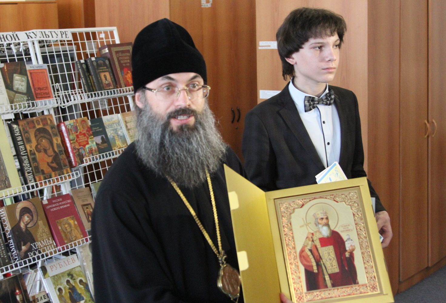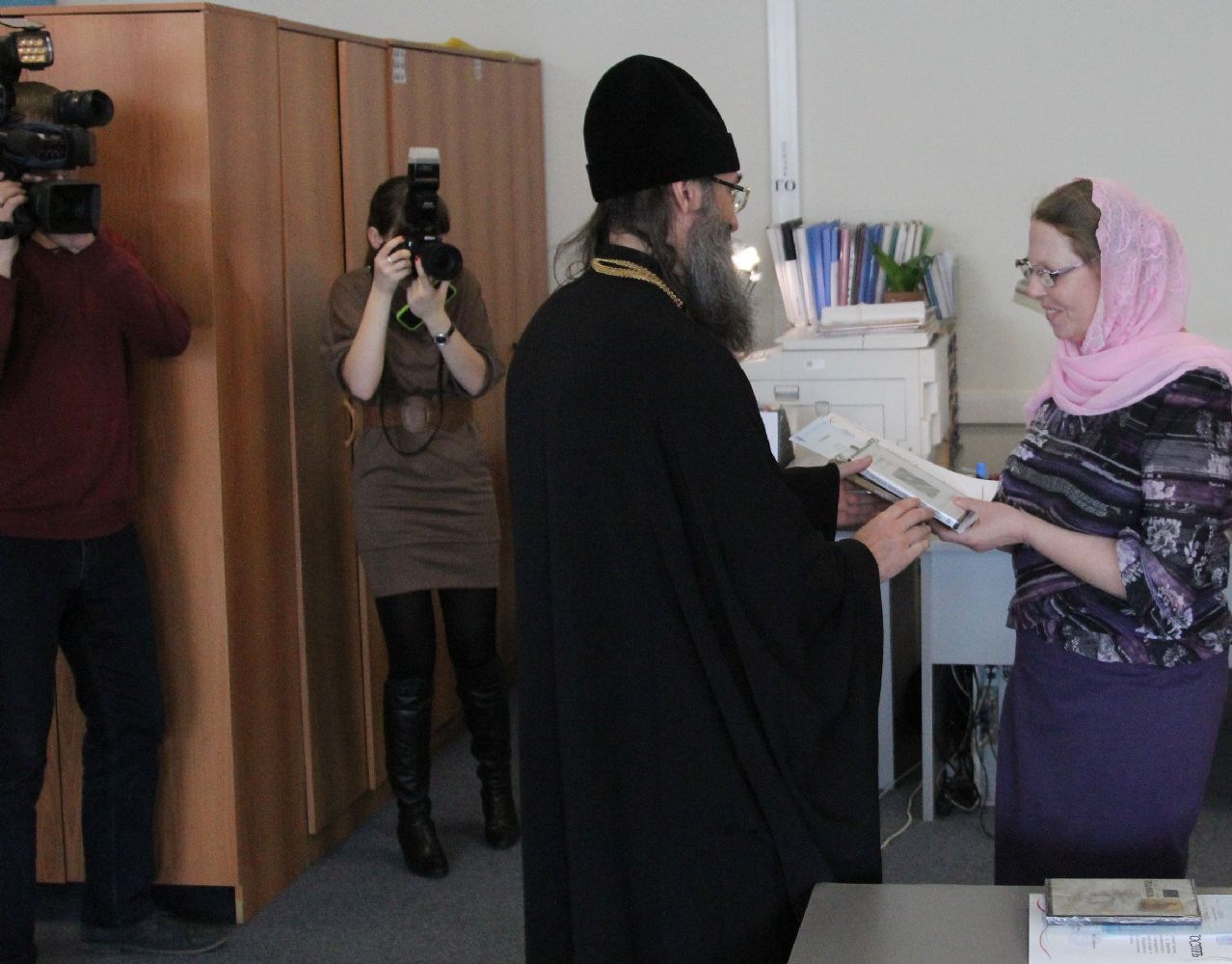В заключение большого мероприятия владыка Иннокентий поблагодарил за организацию и проведение региональной Олимпиады по ОПК и краевой религиоведческой школы всех организаторов — в особенности, профессора Кафедры теологии и религиоведения ДВФУ Анну Владимировну Здор и старшего преподавателя кафедры Елену Викторовну Текутьеву, которой вручил икону — с благословением Главы Приморской митрополии митрополита Вениамина.