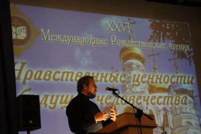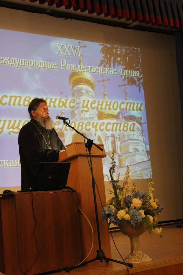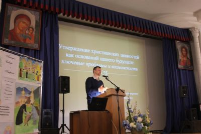 Андрей Владимирович Поповкин, кандидат философских наук, заведующий кафедрой философии ДВО РАН, руководитель научно-образовательного центра Института истории, археологии и этнографии ДВО РАН выступил с докладом «Утверждение христианских ценностей как основа нашего будущего: ключевые проблемы и возможности».
