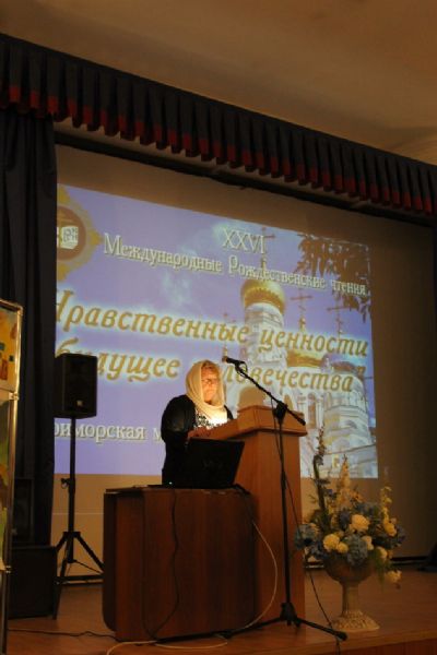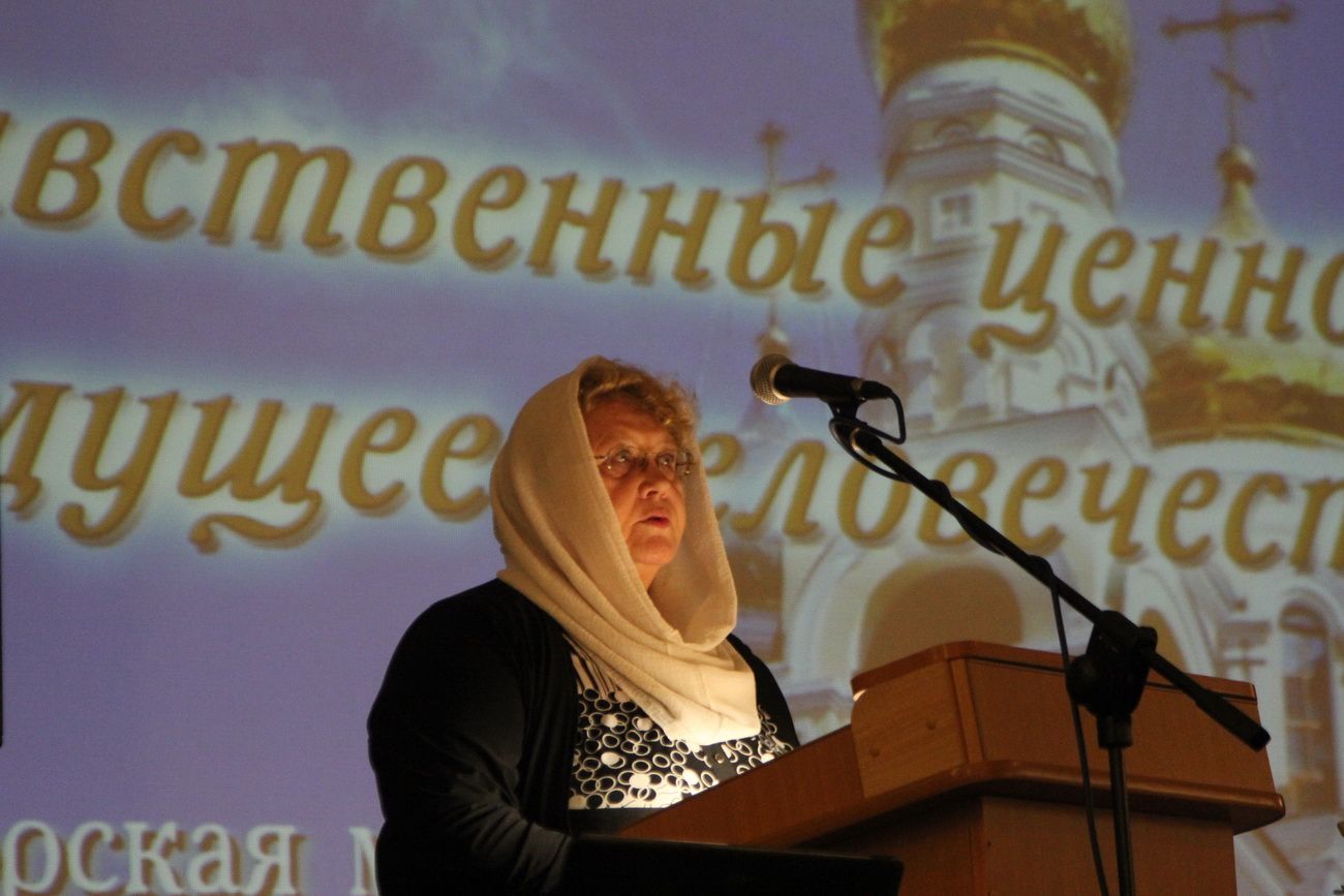 Галина Георгиевна Курносёнок, заместитель председателя Приморского регионального отделения ВОД «Матери России», руководитель Автономной некоммерческой организации «Венец», прочитала доклад «Нравственные ценности в современной семье».