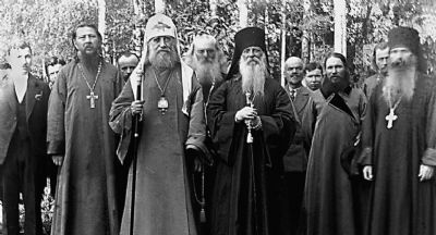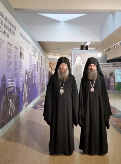 Архиереи в храме Христа Спасителя на выставке к 100-летию Поместного собора