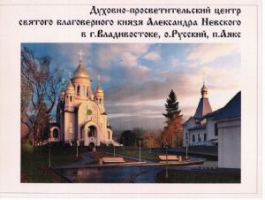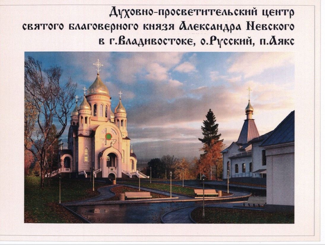 Согласно предлагаемого проекта, духовно-просветительский центр в честь святого благоверного князя Александра Невского будет построен на острове Русский. Это храмовый комплекс, состоящий из благолепного каменного храма, малого деревянного храма, причтового дома с актовым залом на 100 человек, административно-хозяйственными постройками.