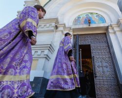 Владивосток. В Неделю 18-ю по Пятидесятнице, 4 октября 2015 года, в день отдания праздника Воздвижения Животворящего Креста Господня, митрополит Владивостокский и Приморский Вениамин совершил в Покровском кафедральном соборе в сослужении духовенства храма Божественную литургию.