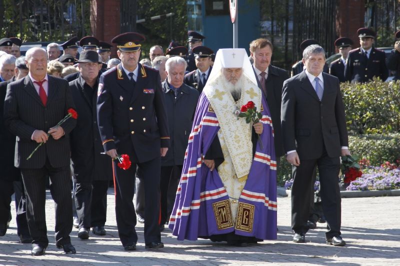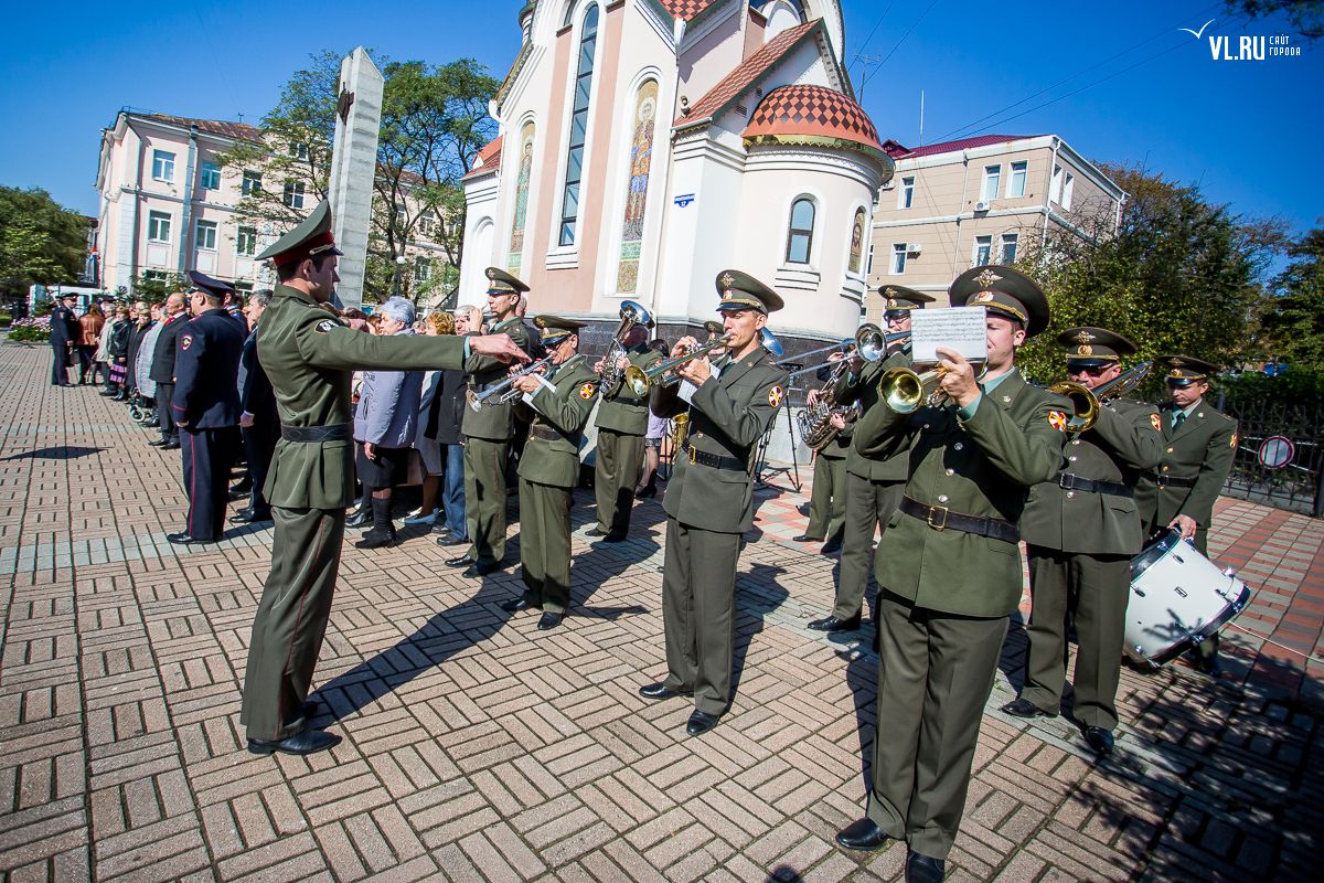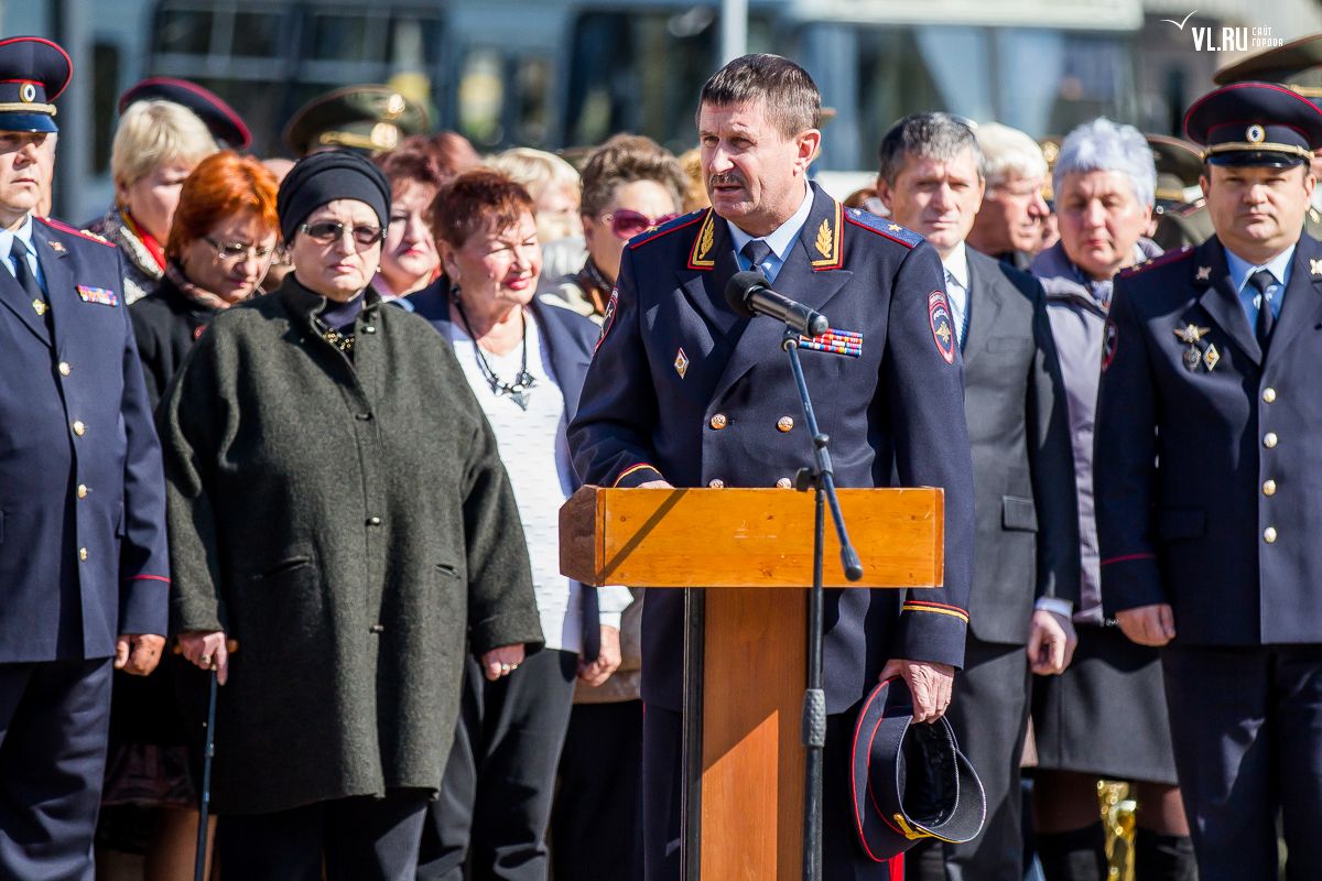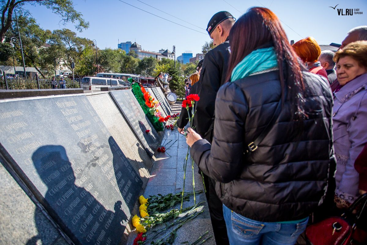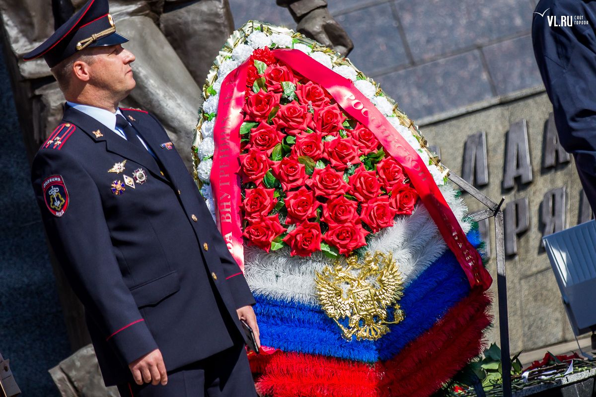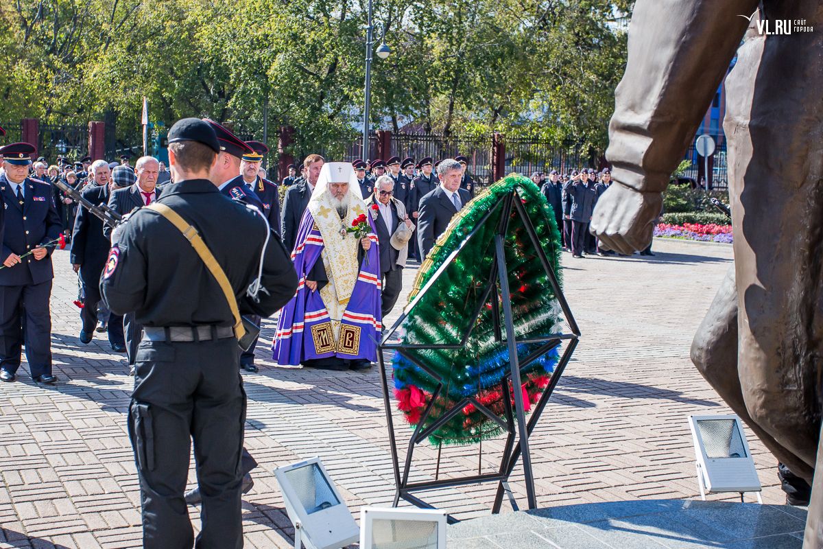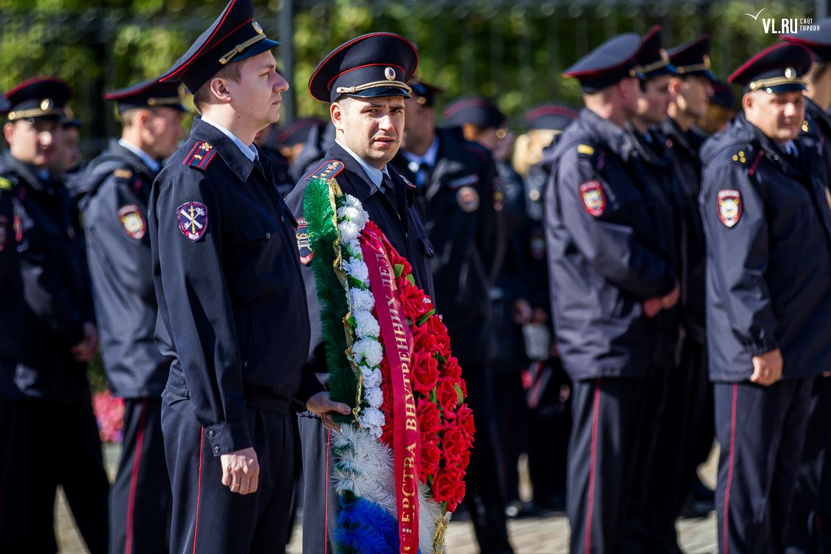 Церемония началась торжественным митингом и возложением венков. В ней приняли участие семьи погибших сотрудников, ветераны ОВД, генерал-майор полиции Николай Афанасьев; представители органов государственной власти; глава администрации Владивостока Игорь Пушкарев; председатель Общественного совета при управлении МВД России по Приморскому краю Николай Морозов; помощник члена Совета Федерации Федерального Собрания РФ Николай Вачаев.