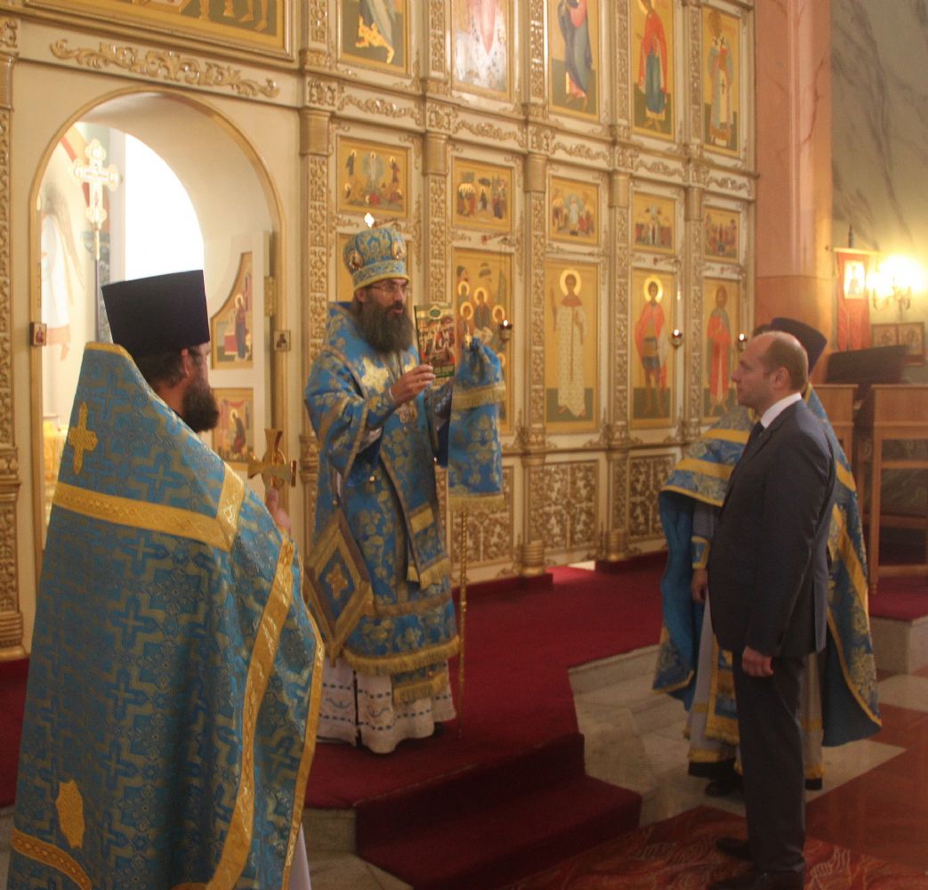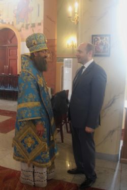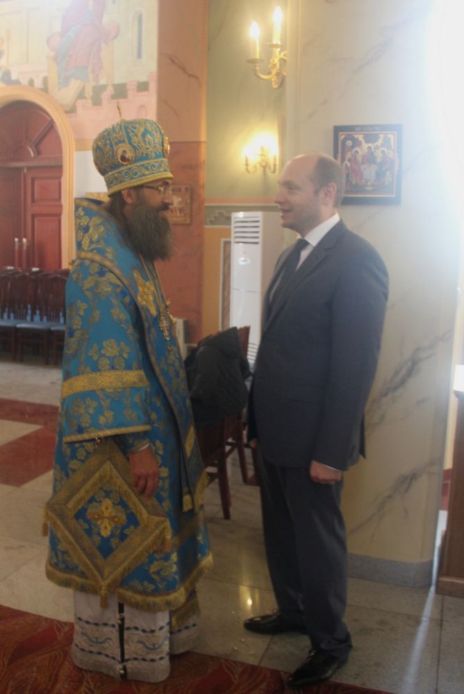 Преосвященнейший владыка также преподнес главе Минвостокразвития А.С.Галушка книгу Святейшего Патриарха Кирилла «Святой князь Владимир: цивилизационный выбор Руси».