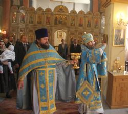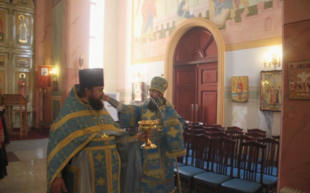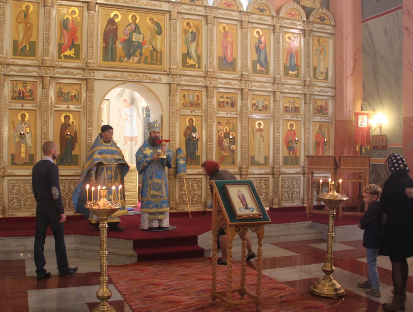 По завершении службы епископ Иннокентий произнес проповедь о празднике Покрова Божией Матери и отметил значимость благоукрашения храма в КНДР:
