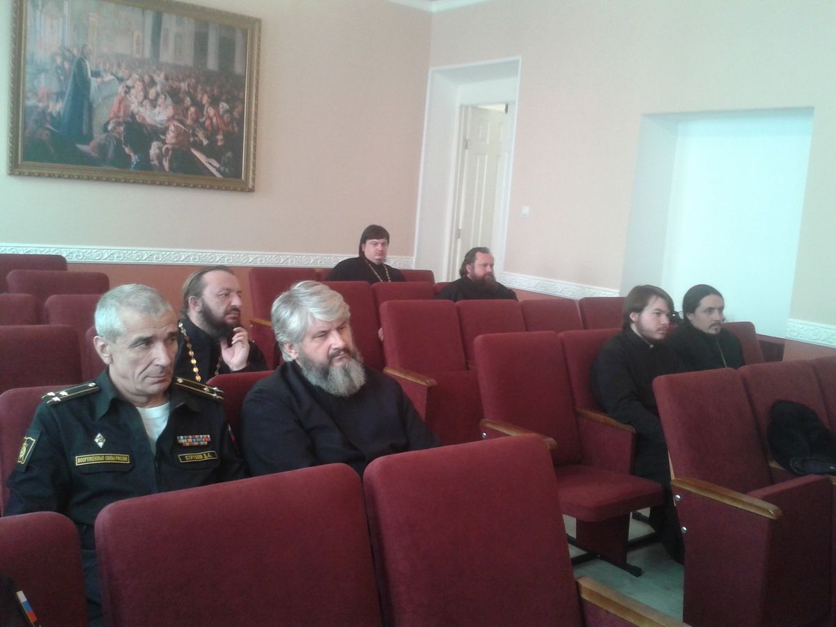 После вступительного слова владыки Вениамина Александр Иванович Суровцев рассказал о работе с верующими военнослужащими Вооруженных Сил Российской Федерации и путях её совершенствования. Собравшиеся обсудили актуальные вопросы по организации работы непосредственно в воинских частях и соединениях и по участию военного духовенства в решении проблем, оказывающих негативное влияние на жизнедеятельность войск.
