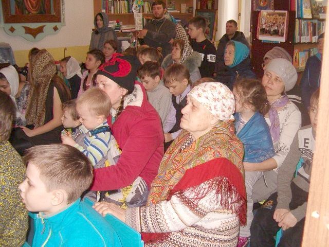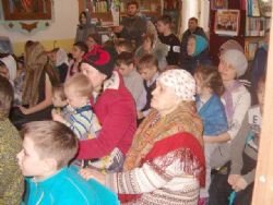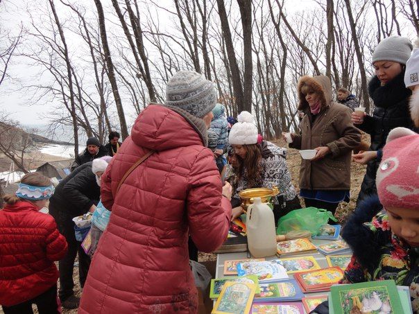 13.03.2016 Сестры сестричества милосердия Успенского храма в рамках Недели православной книги устроили праздник для жителей посёлка Рыбачий. На праздник собралось более 40 жителей посёлка, большая часть – дети. Клирик Успенского храма протоиерей Андрей Калчев отслужил молебен и напомнил о начале Великого поста. Затем сестры Общины рассказали ребятам о Церкви, Божиих заповедях, о молитве и об иконах. Каждый из 30 детей получил в подарок книги: иллюстрированные молитвословы, сборники рассказов и притч православных писателей, в том числе, книжки популярной детской серии «Зёрнышки». Беседа продолжилась за чаем: прямо под открытым небом для всех участников праздника накрыли сладкий стол.