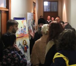 19.02.2016 г. Открытый урок в воскресной школе, на который пришли десятиклассники МОБУ СОШ № 2. Урок провёл клирик храма иерей Сергий Ющенко. Ученики попробовали читать тексты на церковнославянском языке из книги «Апостолъ», которая используется в богослужении.