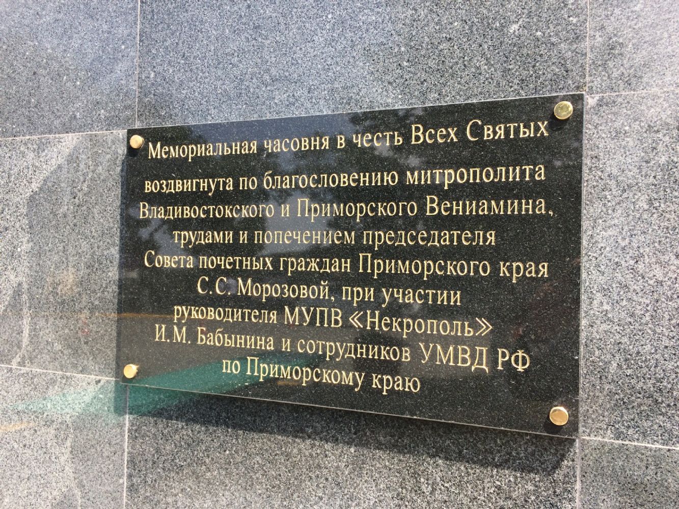 Мемориальная часовня была возведена по инициативе председателя Общественного совета при УМВД России по Приморскому краю С. С. Морозовой. В торжественном открытии часовни также приняли участие: руководитель Управления МВД России по Приморскому краю Н. Н. Афанасьев; представители руководства Приморского края; первый заместитель главы администрации г. Владивостока К. А.Лобода; председатель Думы города Владивостока Е. В. Новицкая; сотрудники приморской полиции, ветераны, представители общественных организаций, почетные граждане, матери и вдовы погибших сотрудников органов внутренних дел.