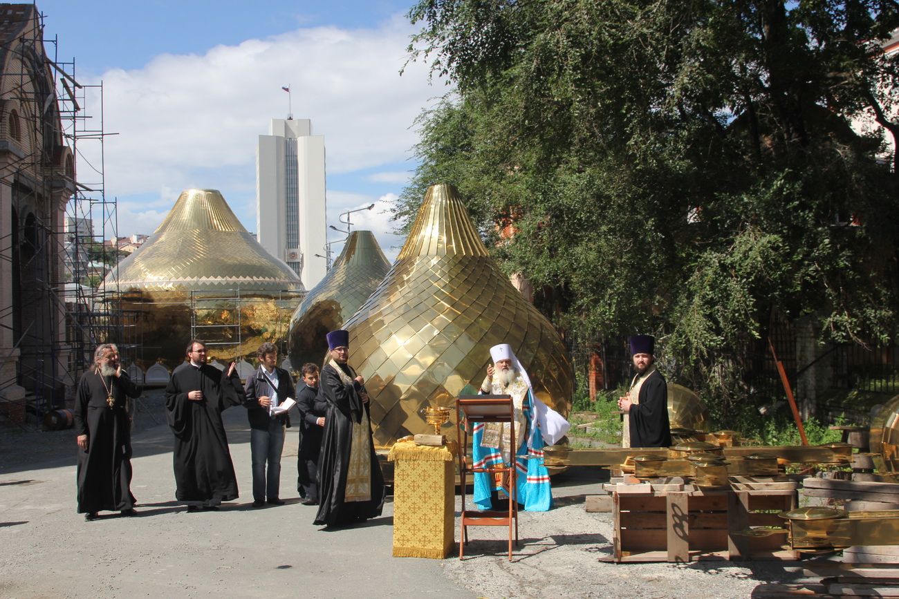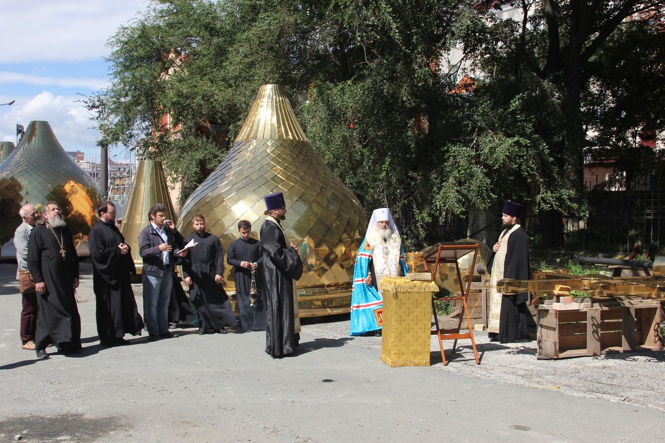 Митрополит Вениамин освятил кресты и купола строящегося Спасо-Преображенского собора