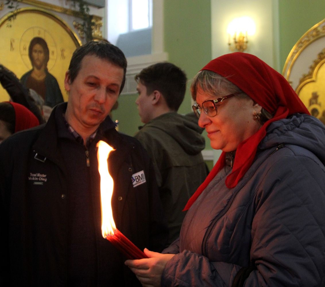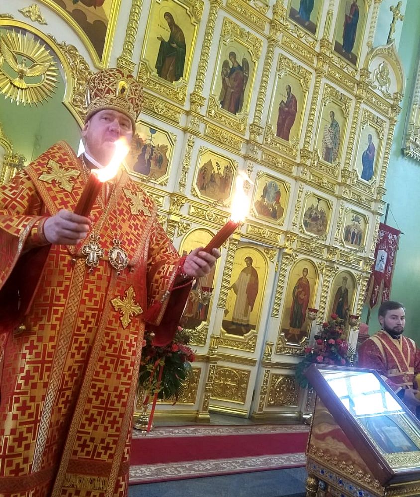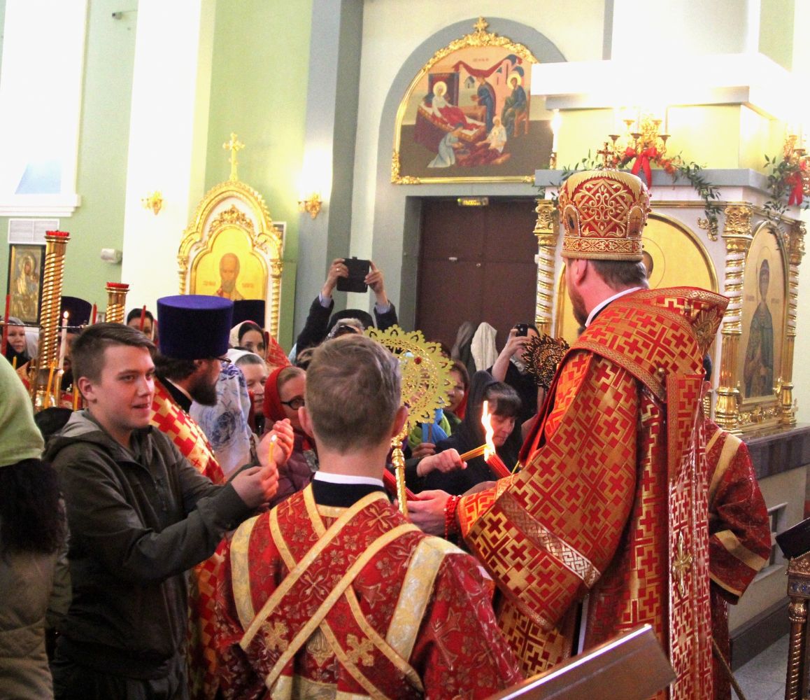 В завершение богослужения митрополит Владимир обратился к пастве с архипастырским словом о чуде Благодатного огня, который сходит на Пасху в Иерусалиме, в храме Гроба Господня, а также о духовном значении Светлой седмицы.