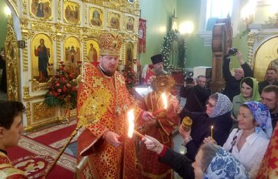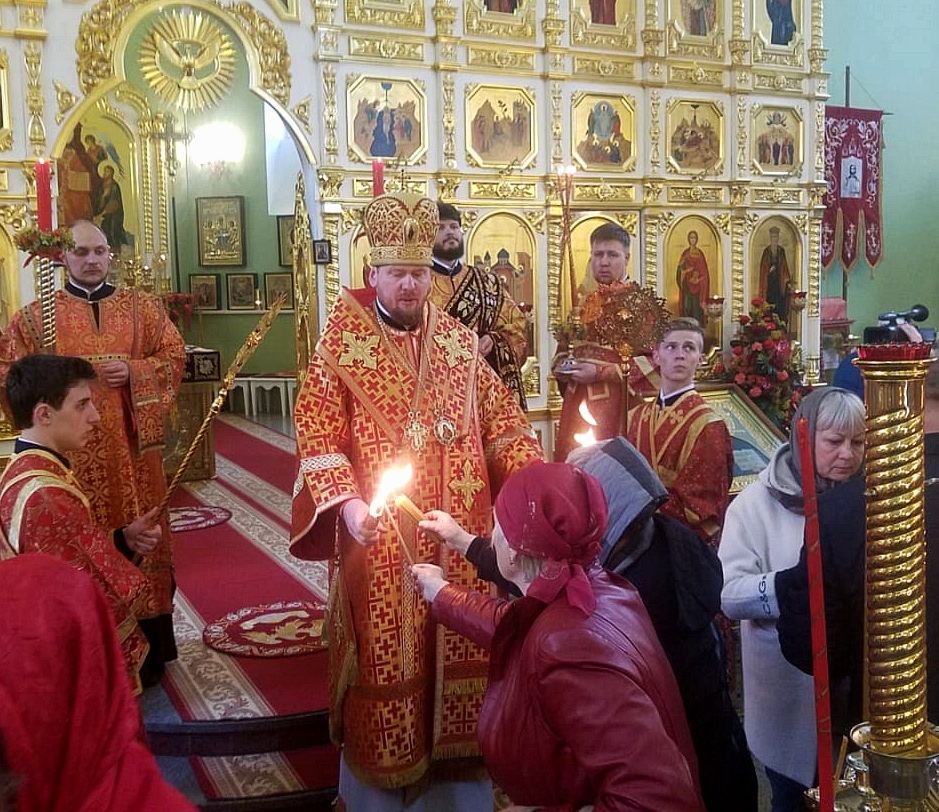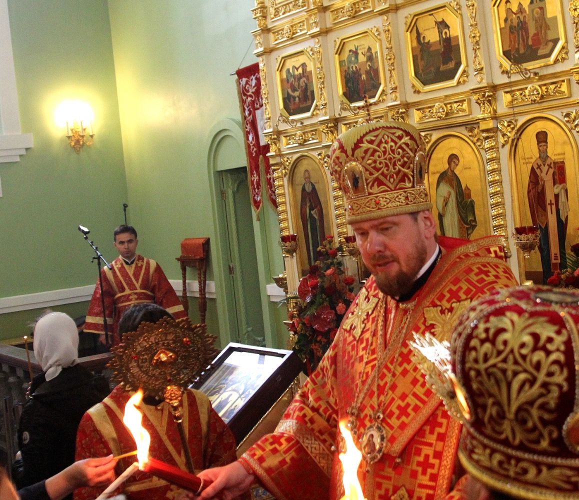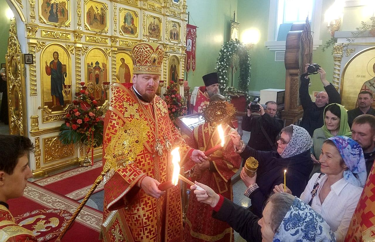 Митрополит Владимир возглавил встречу Благодатного огня и совершил вечернее богослужение в Покровском соборе