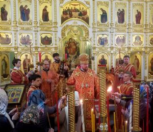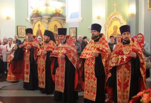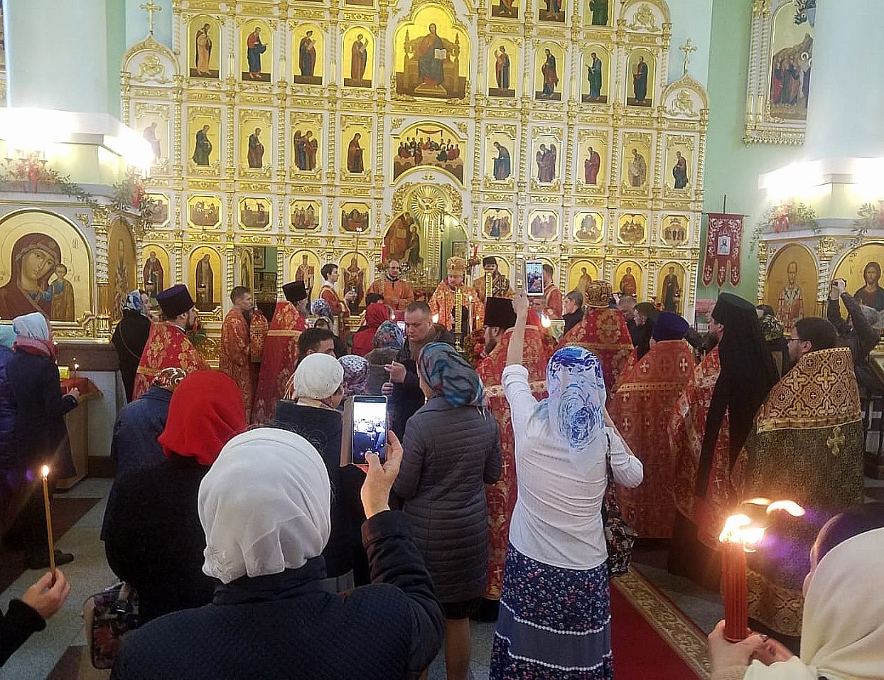 За вечерним богослужением Его Высокопреосвященству сослужили благочинные епархии, руководители епархиальных отделов, настоятели и клир храмов и монастырей.